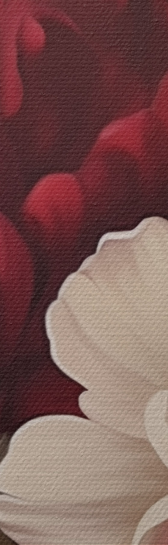 De fijne weving van draden op dit doek lijkt op het oppervlak van professionele schildersdoeken.