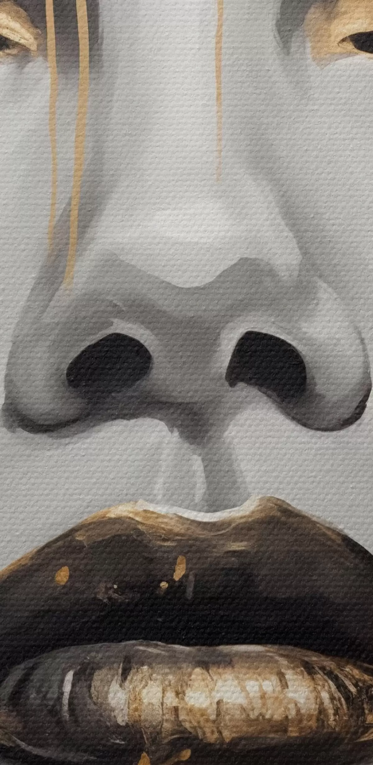 Het schilderij kan direct na ontvangst worden opgehangen. Het schilderij wordt opgespannen op een 2 cm breed houten spieraam.