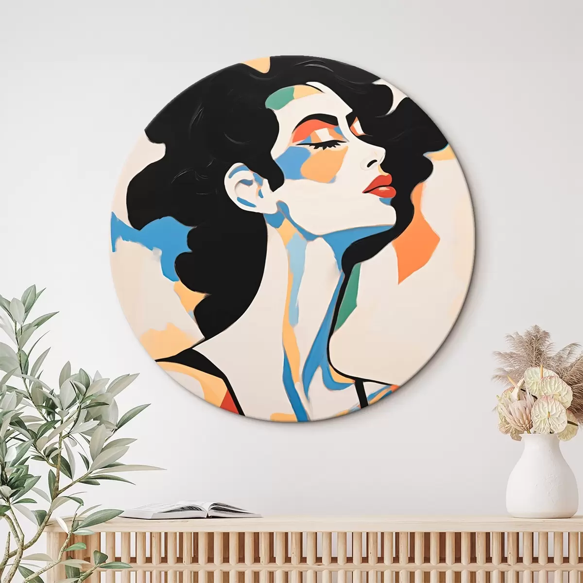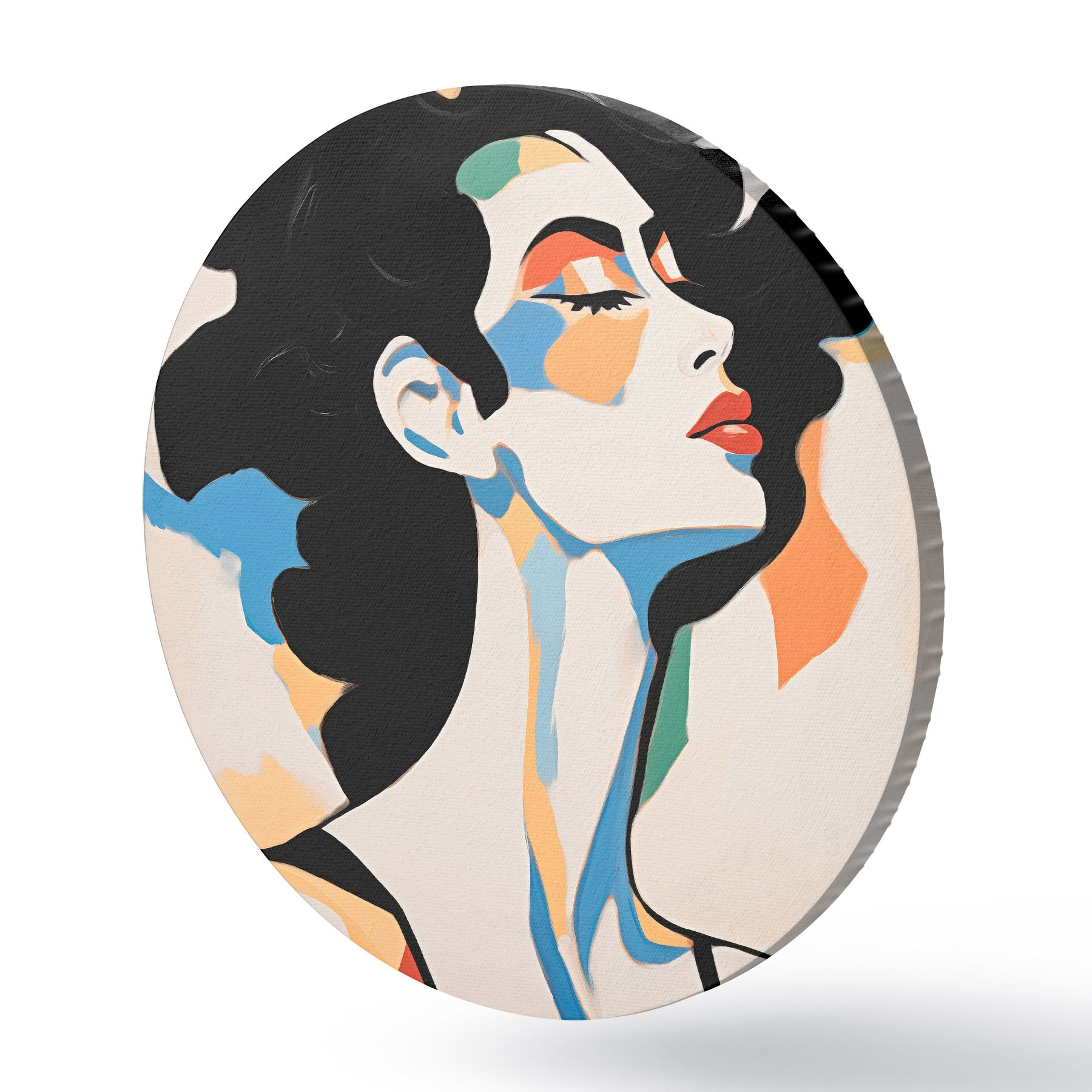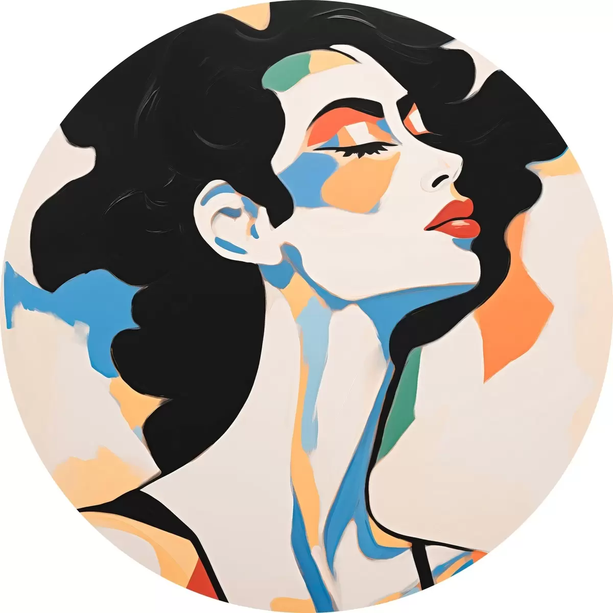 Ronde schilderijen Abstract portret van een vrouw met imitatie van penseelstreken r45233