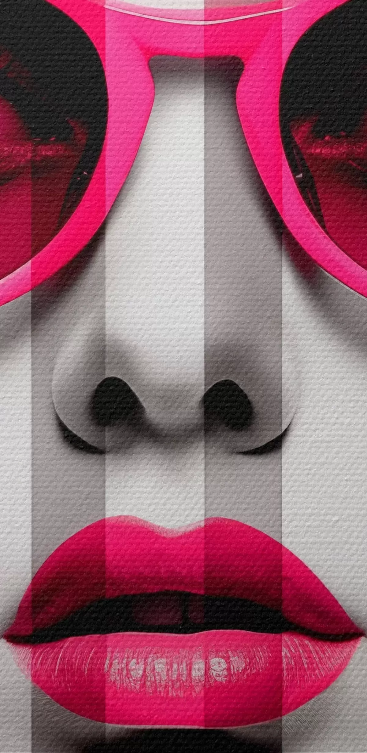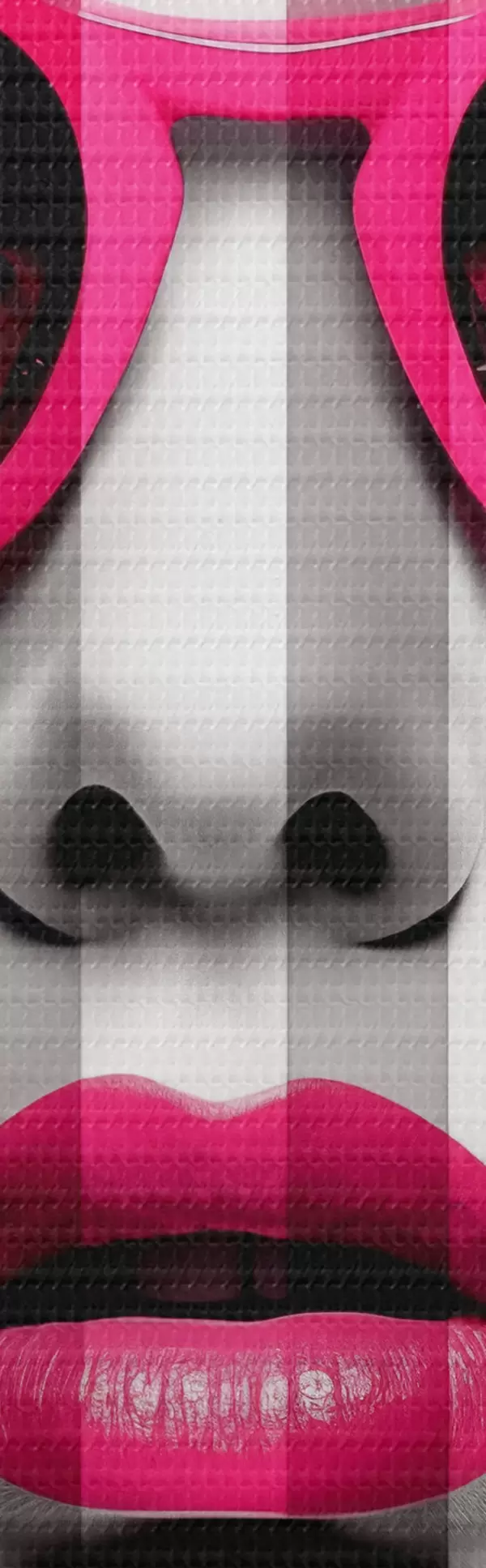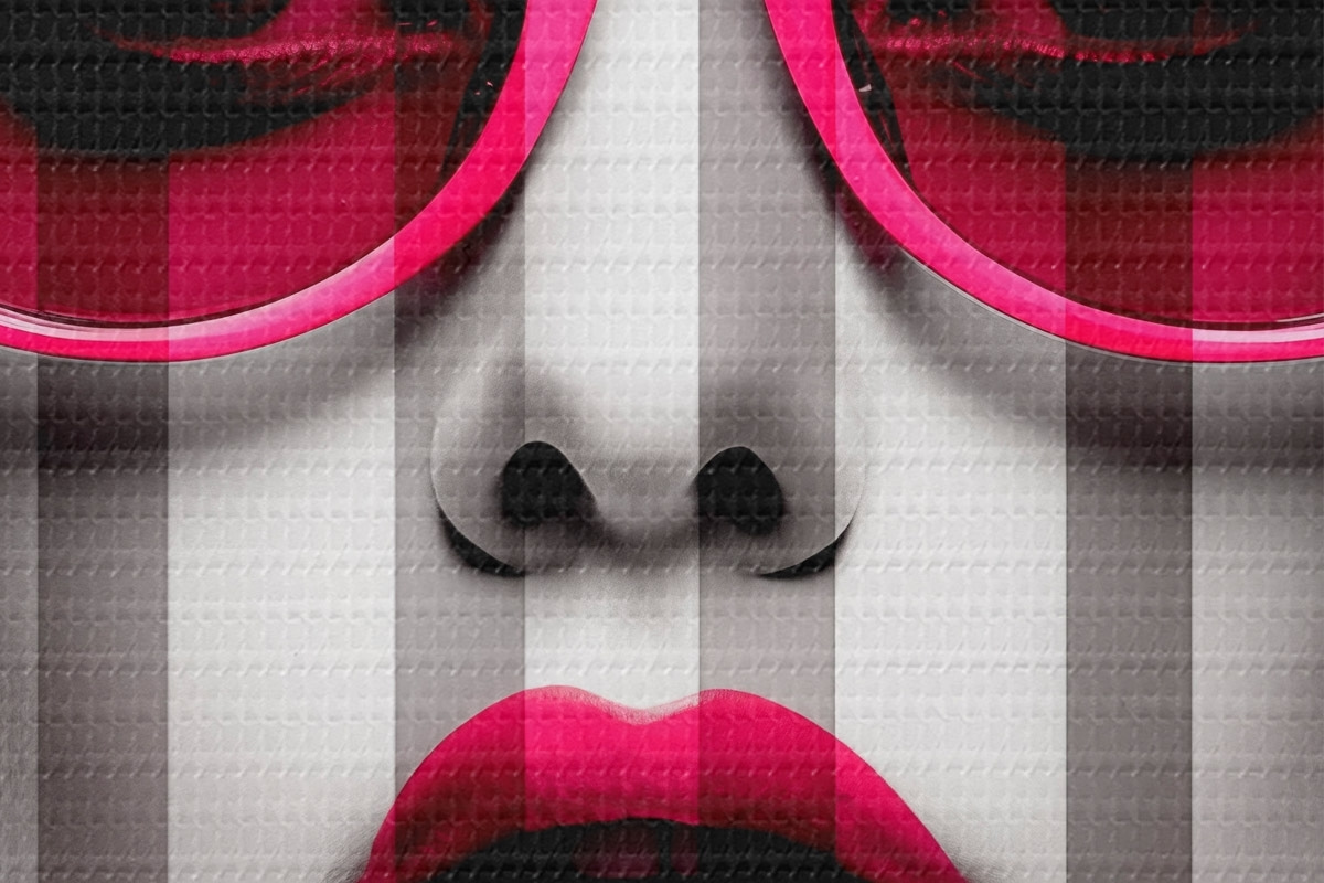 Afbeelding Vrouw met roze bril met zwarte en witte strepen Nr r45315