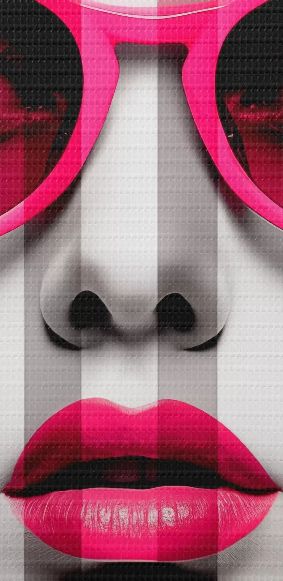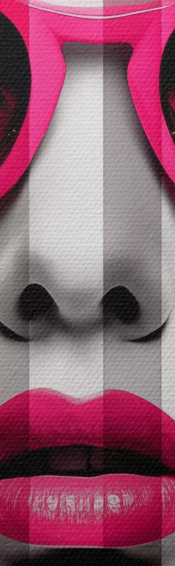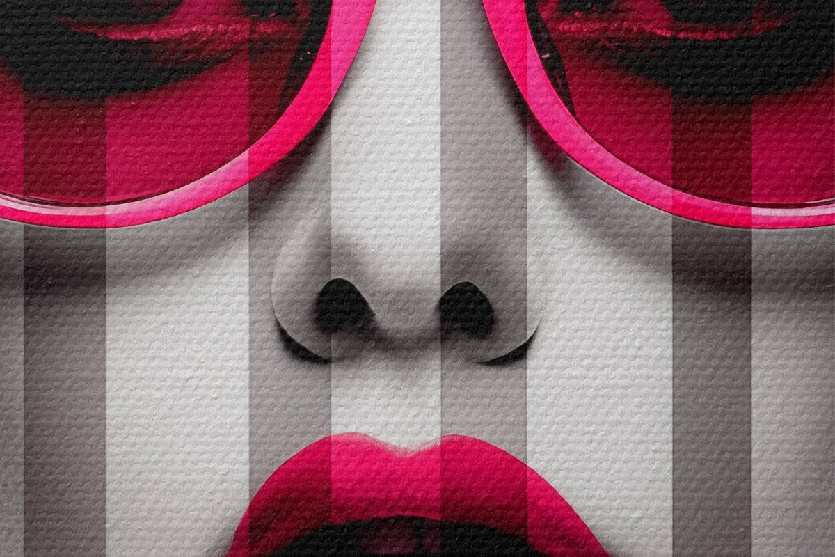 Afbeelding Vrouw met roze bril met zwarte en witte strepen Nr r45315