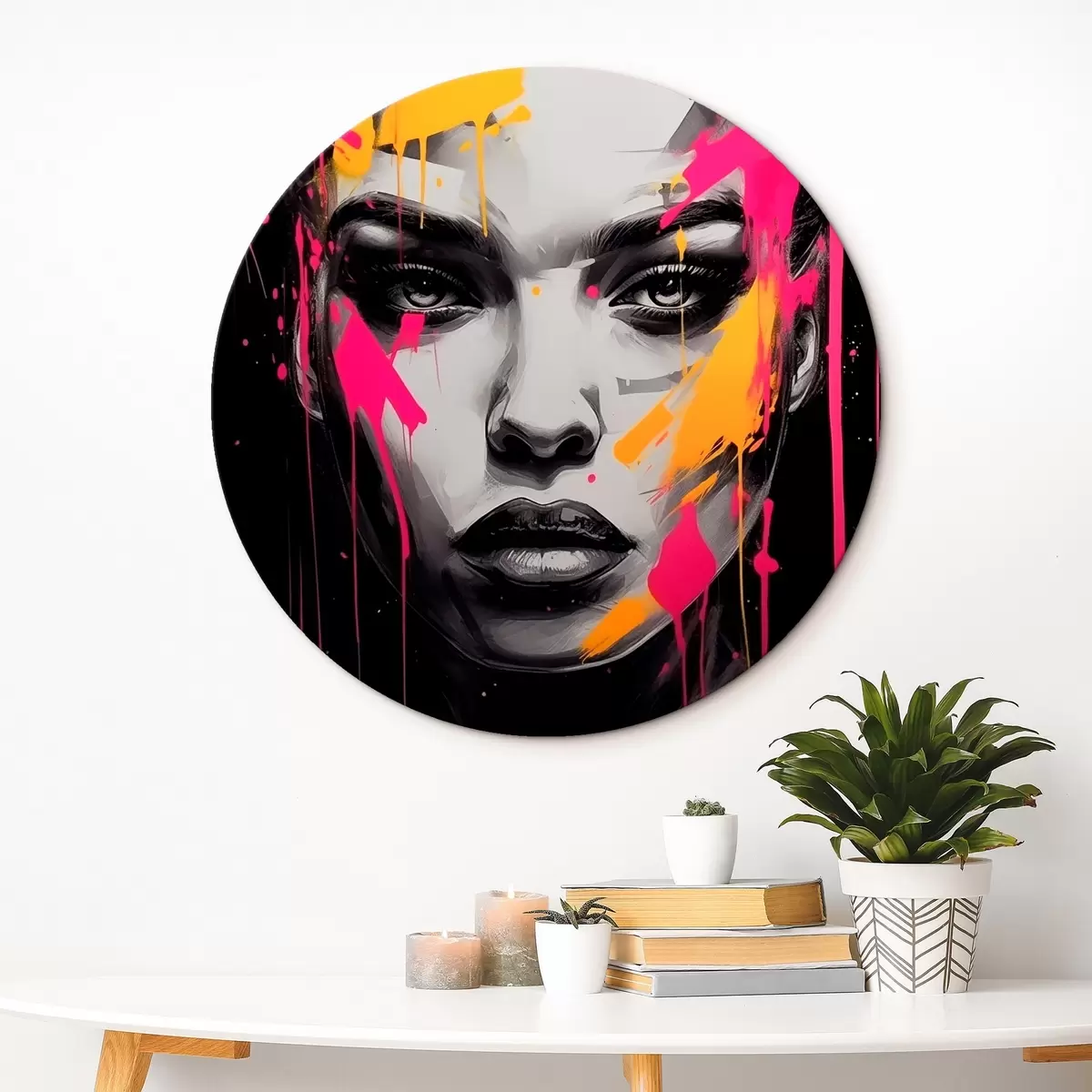 Ronde schilderijen Zwart-wit vrouwenportret r45319