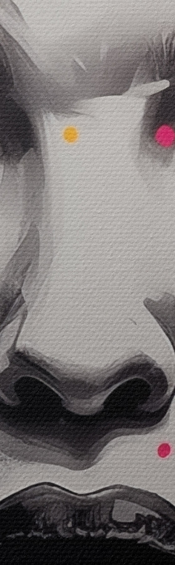 Het schilderij kan voorzichtig worden schoongeveegd met een droge zachte doek of spons; het wordt niet aanbevolen om natte producten te gebruiken. Het gebruik van een vochtige spons is alleen toegestaan als het schilderij gevernist is.