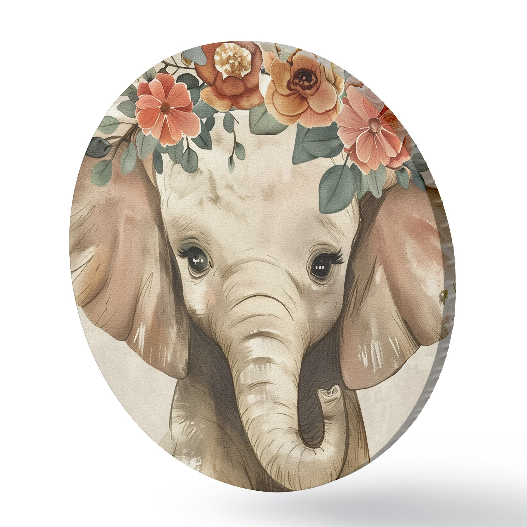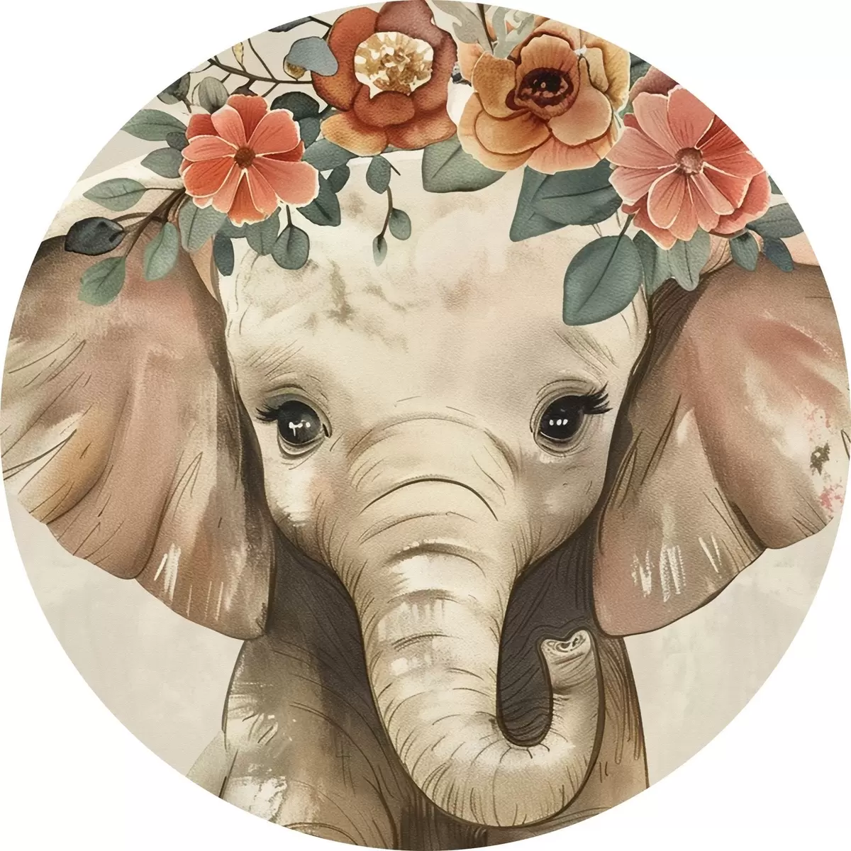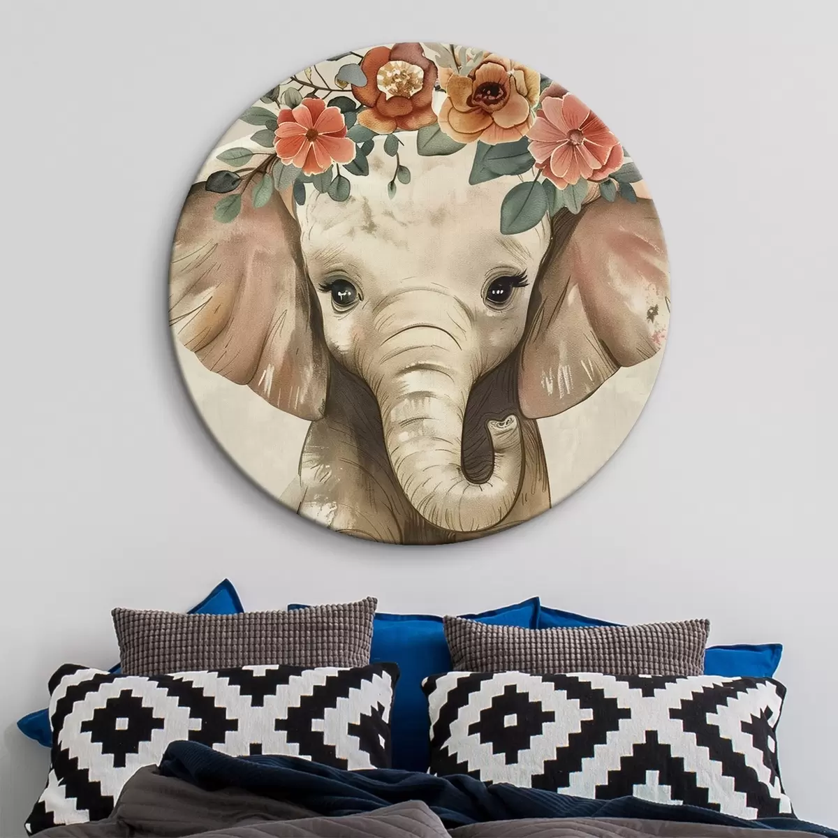 Ronde schilderijen Schattige aquarel olifant met bloemen r45330