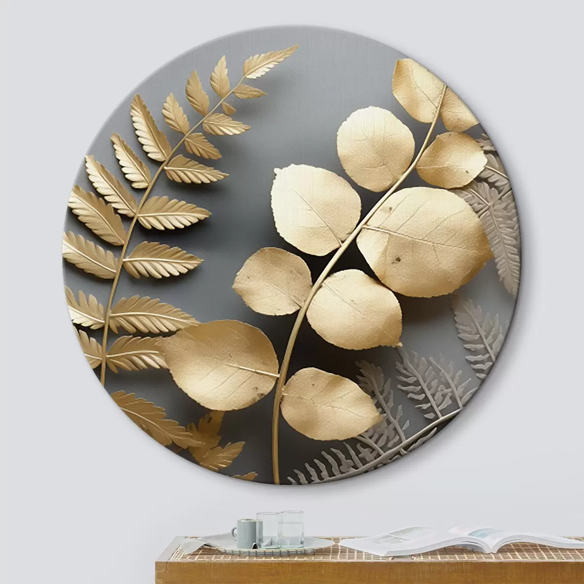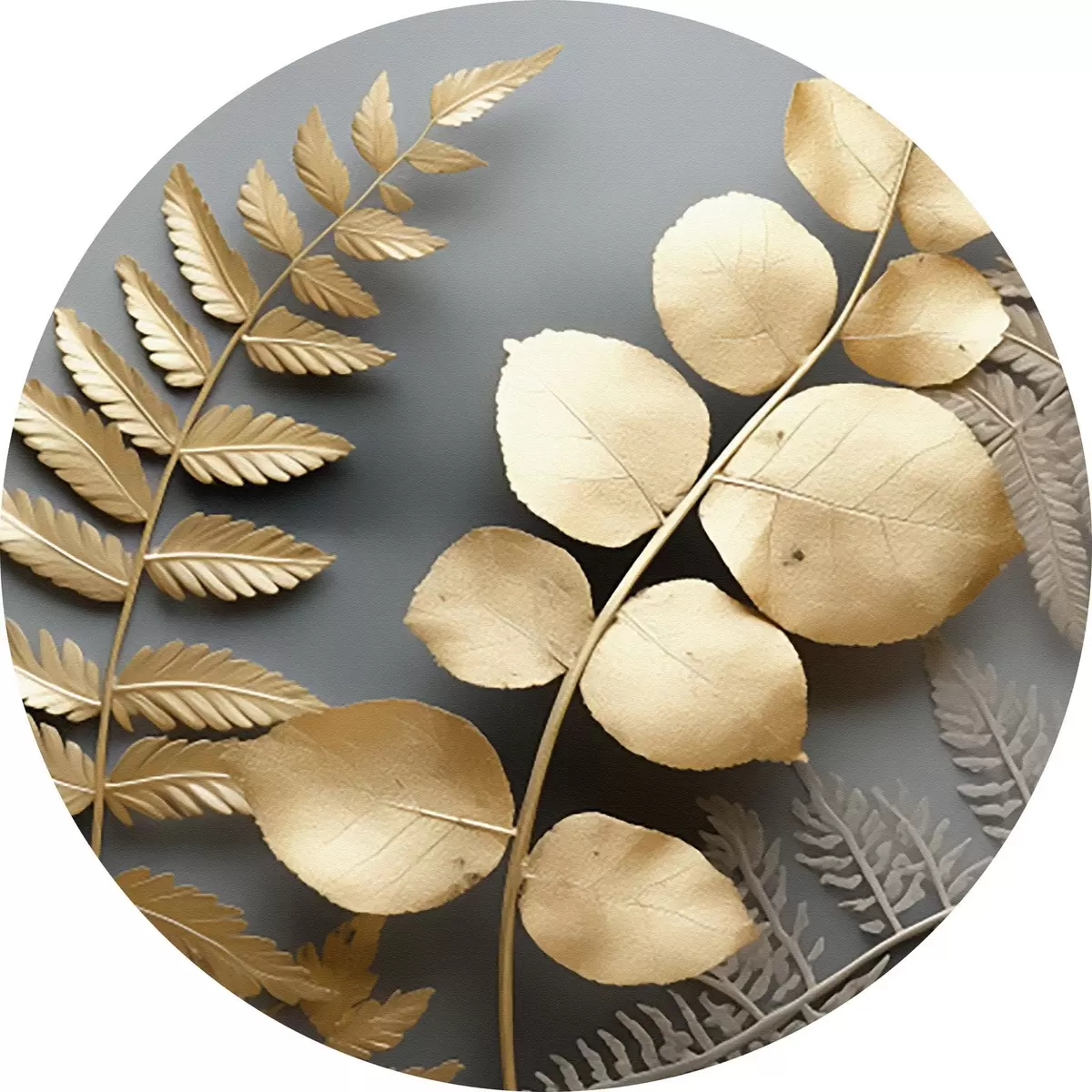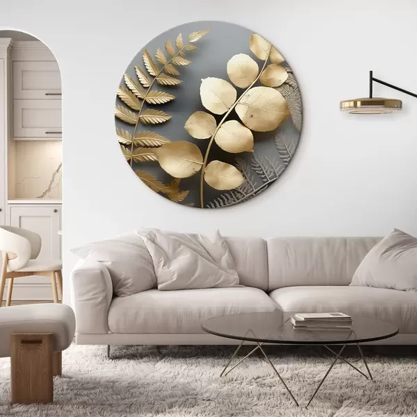 Ronde schilderijen Varens en eucalyptustakken op een donkere achtergrond r45334