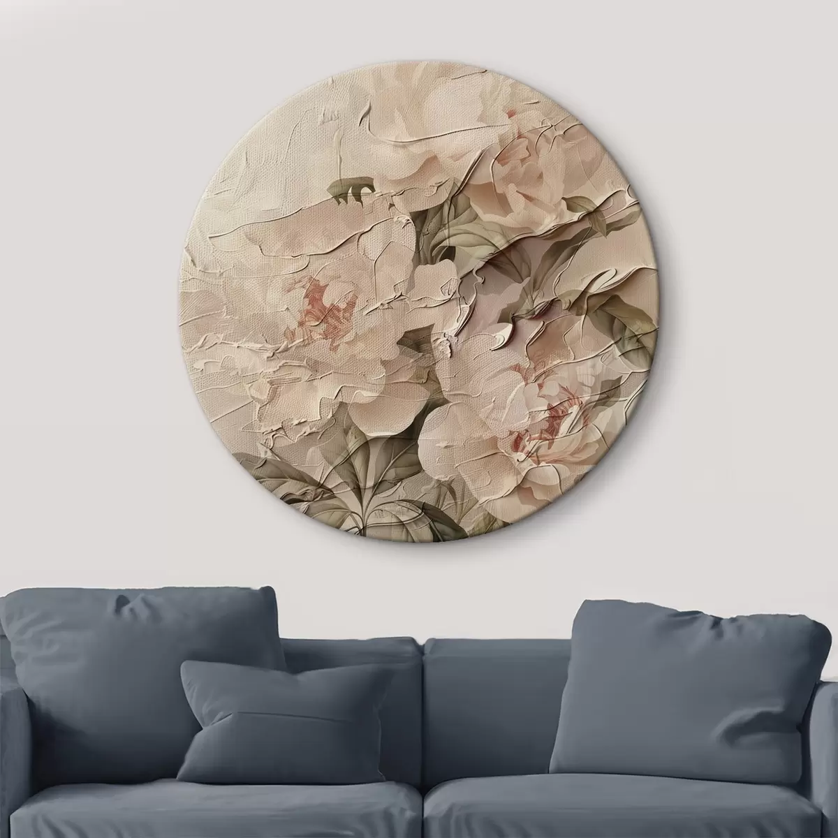 Ronde schilderijen Weelderig boeket pioenrozen in aquarelstijl op een lichte achtergrond r45336