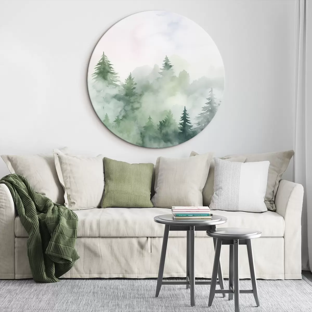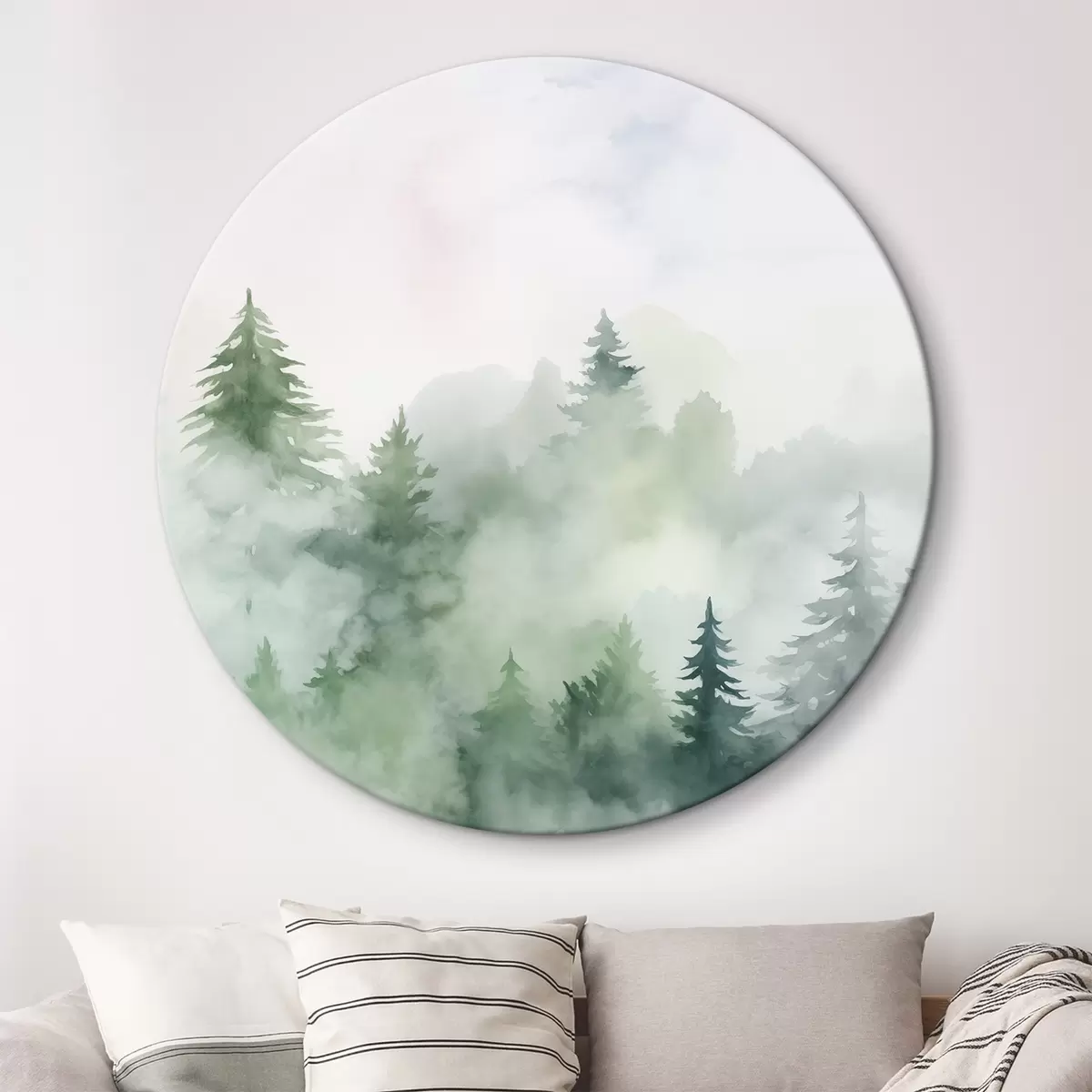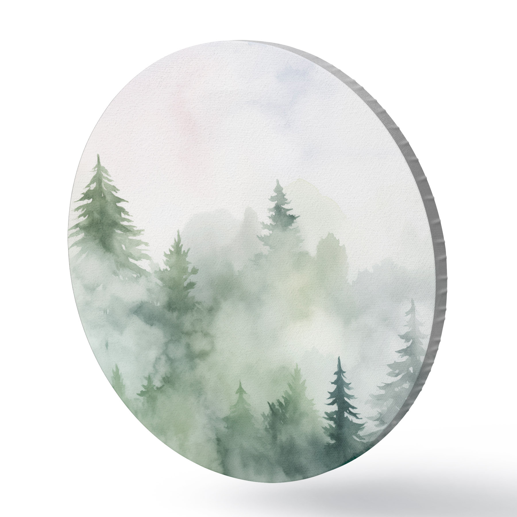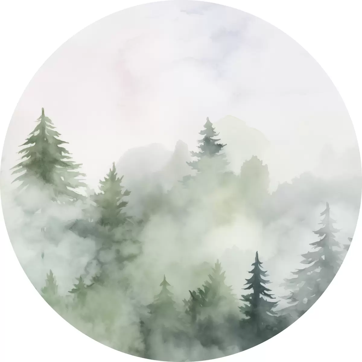 Ronde schilderijen Bos in mist imitatie van aquarel r45343