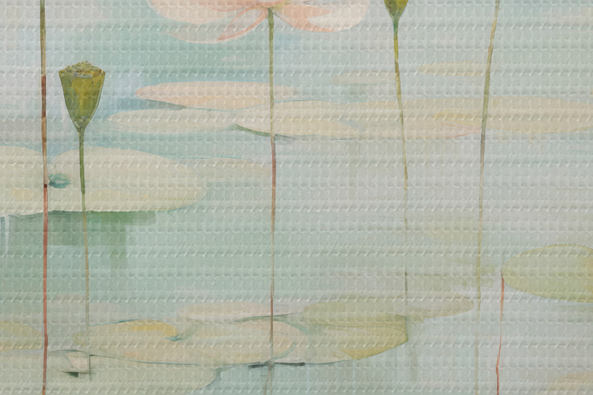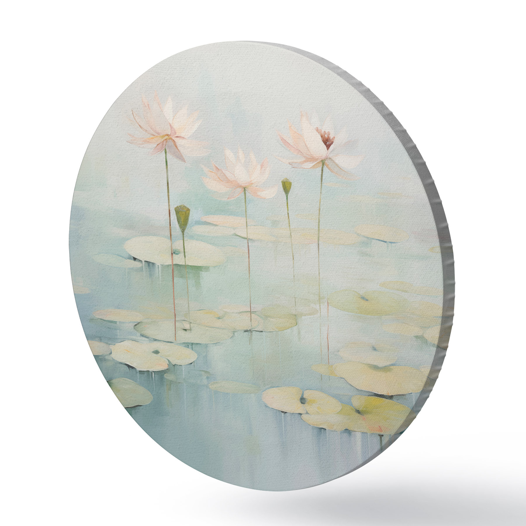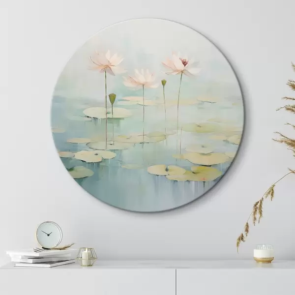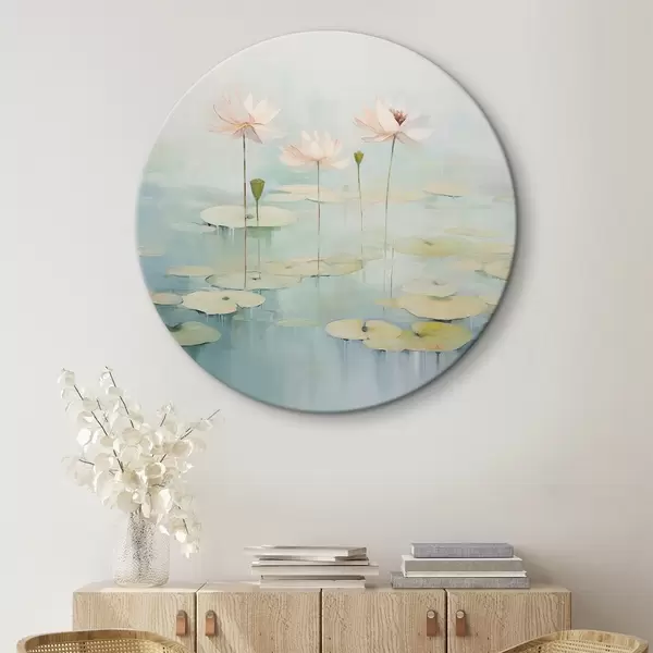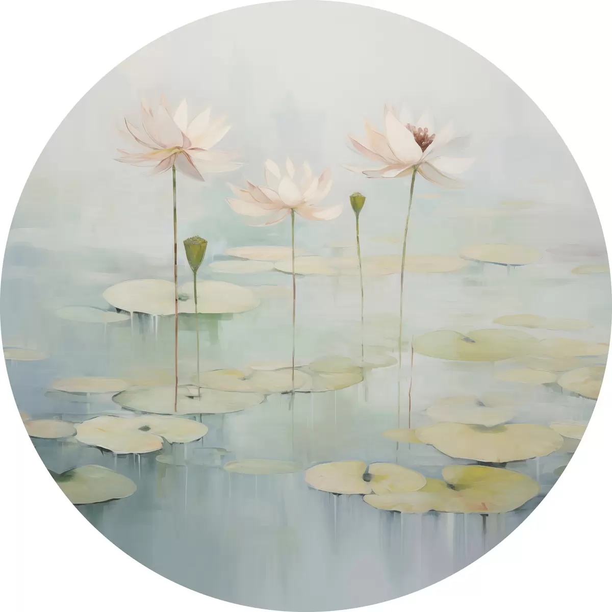 Ronde schilderijen Lotusbladeren en bloemen op de vijver r45350