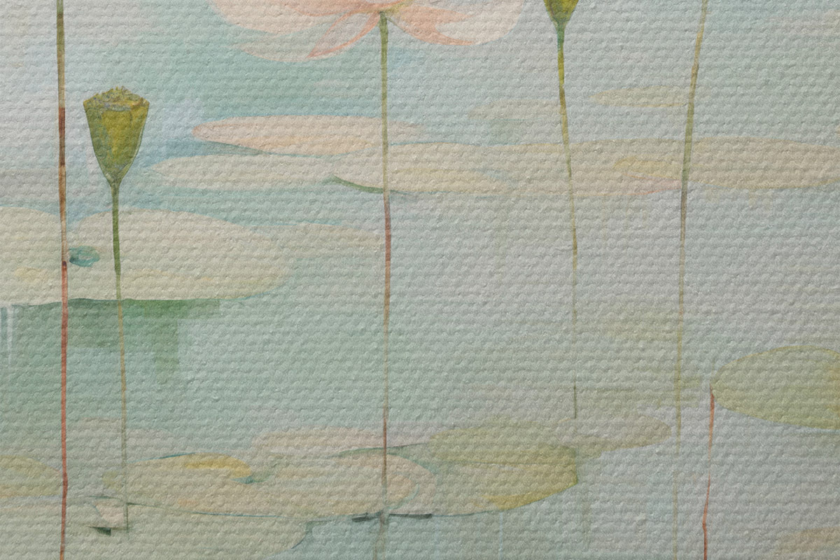 Afbeelding Lotusbladeren en bloemen op de vijver Nr r45350