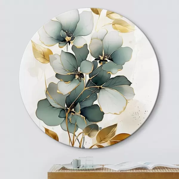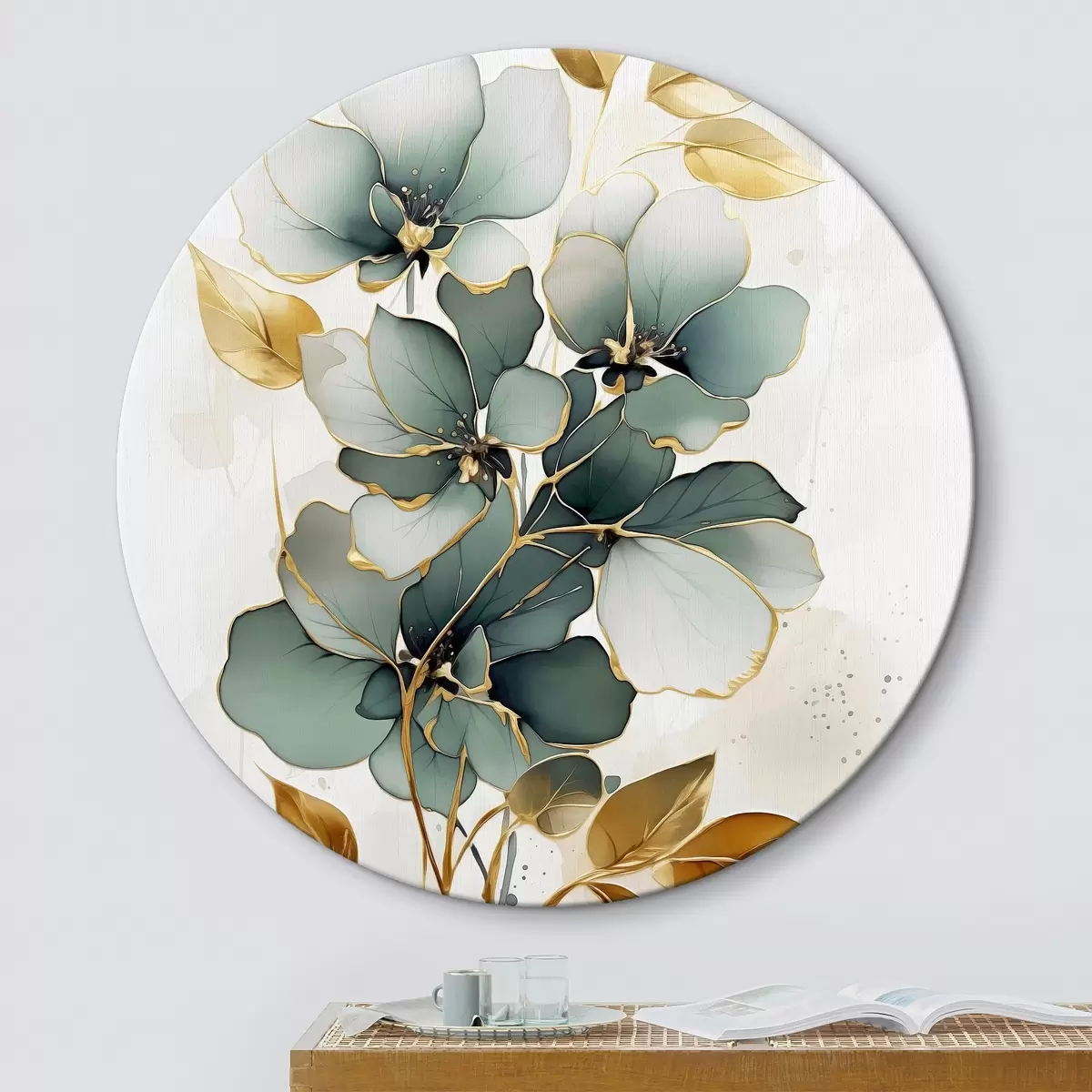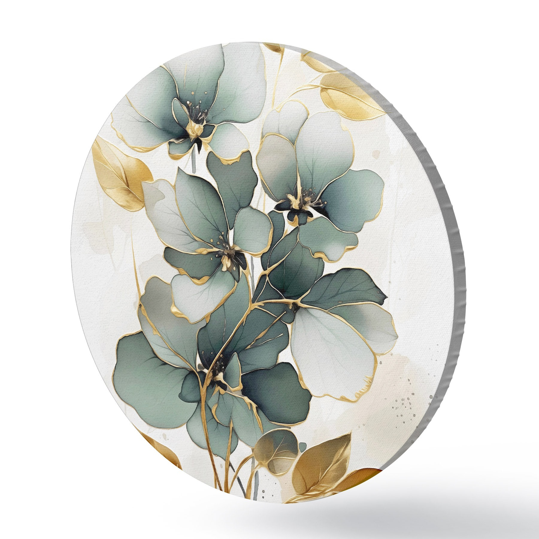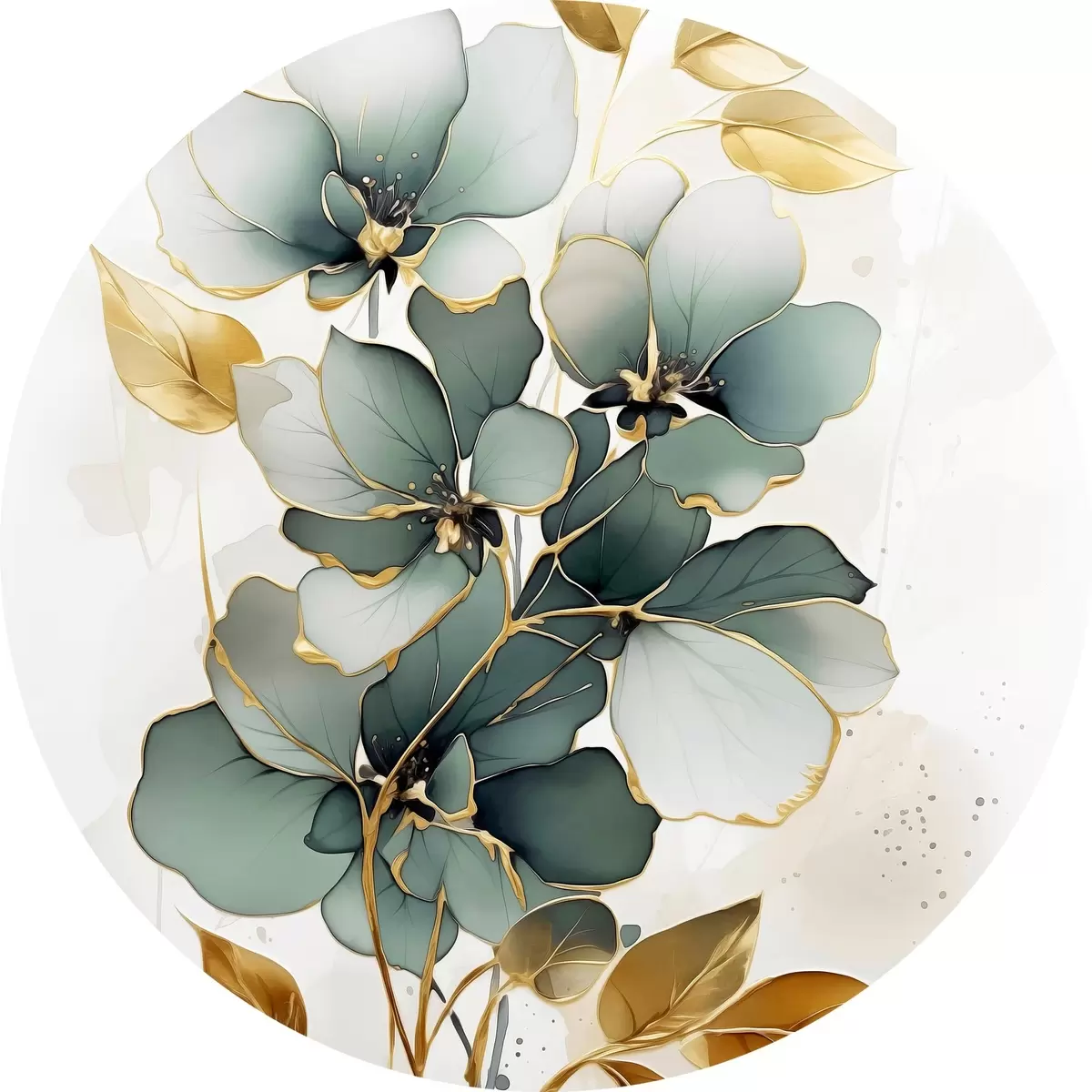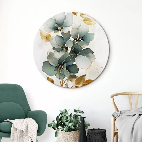 Ronde schilderijen Abstracte tak met bloemen en bladeren r45367