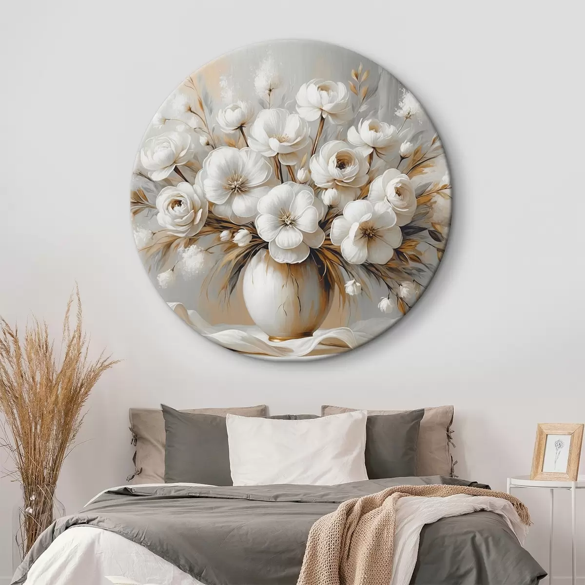 Ronde schilderijen Een delicaat boeket bloemen in een vaas r45375