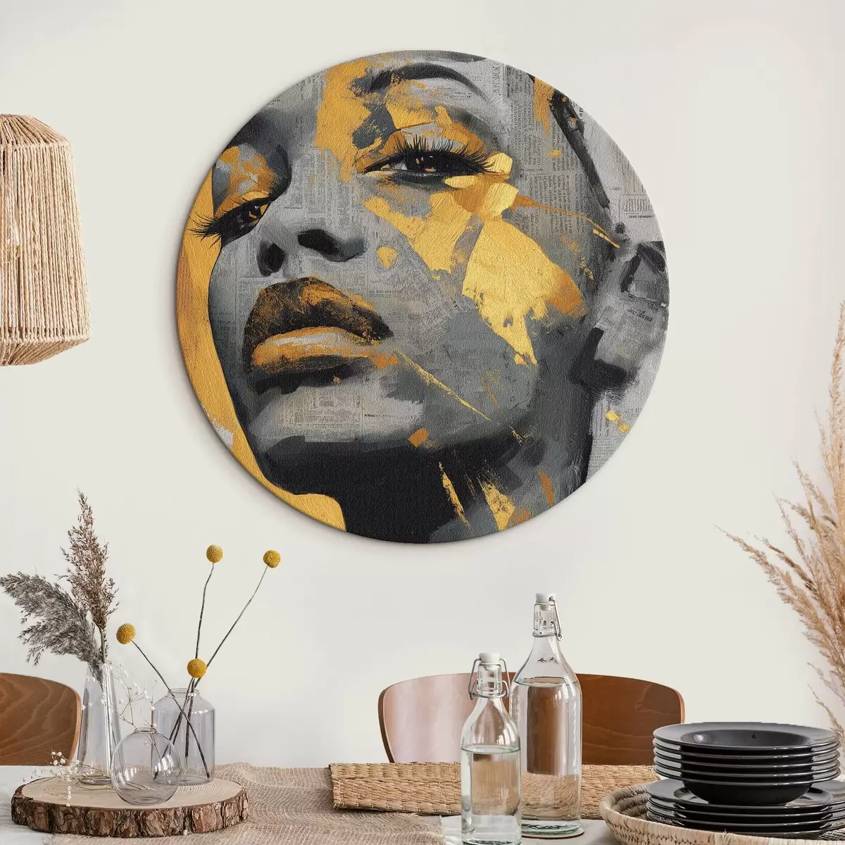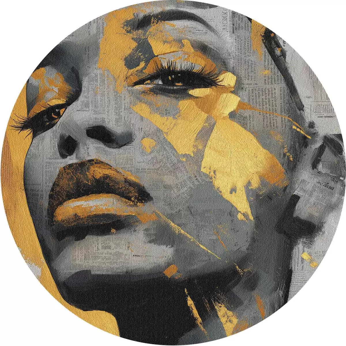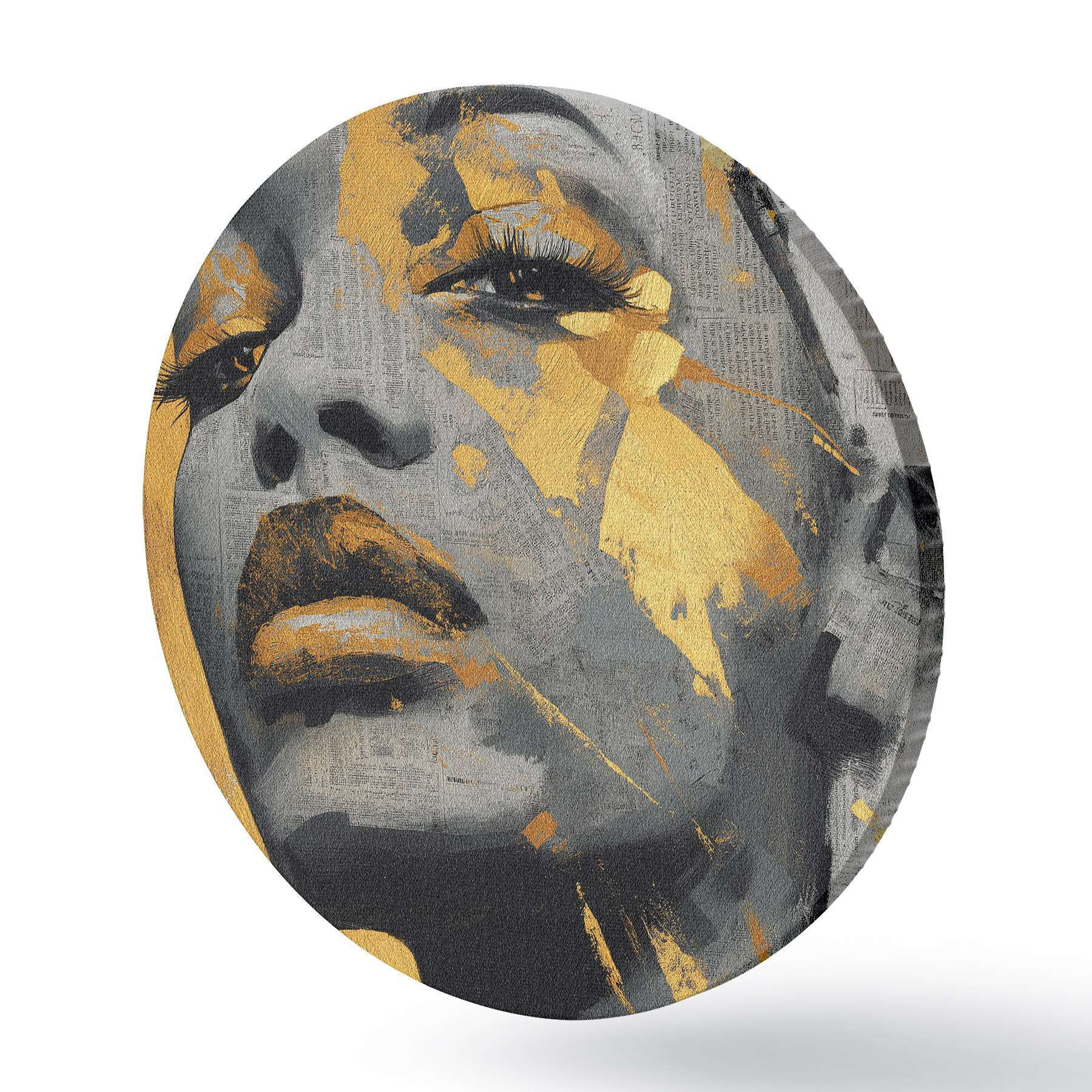 Ronde schilderijen Gemengde-media-portret met krantenfragmenten en decoratieve penseelstreken r45419