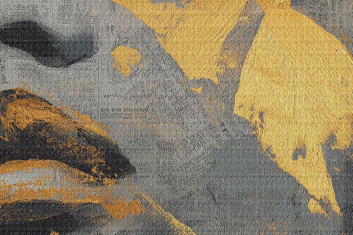 Afbeelding Gemengde-media-portret met krantenfragmenten en decoratieve penseelstreken Nr r45419