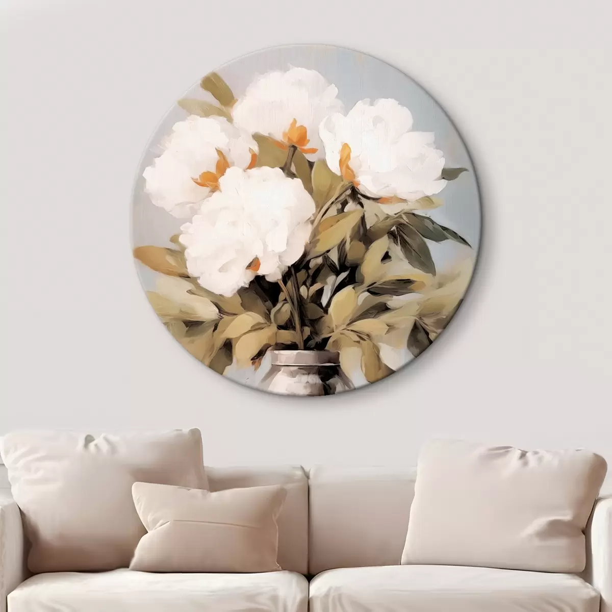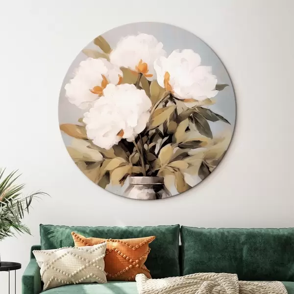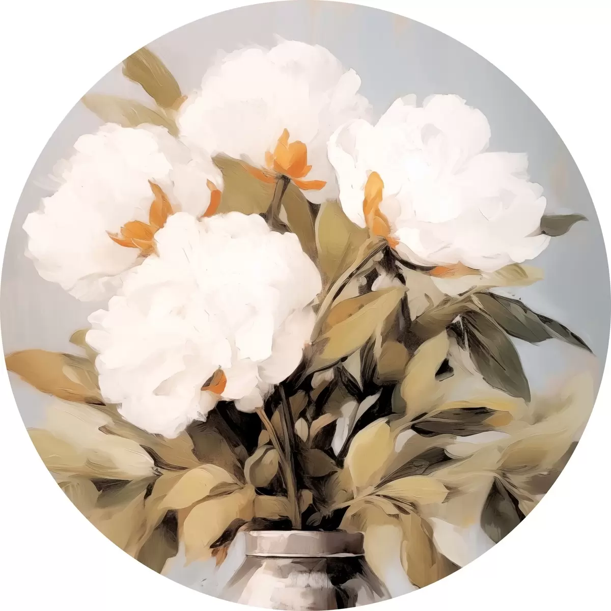 Ronde schilderijen Boeket pioenrozen in een vaas r45422