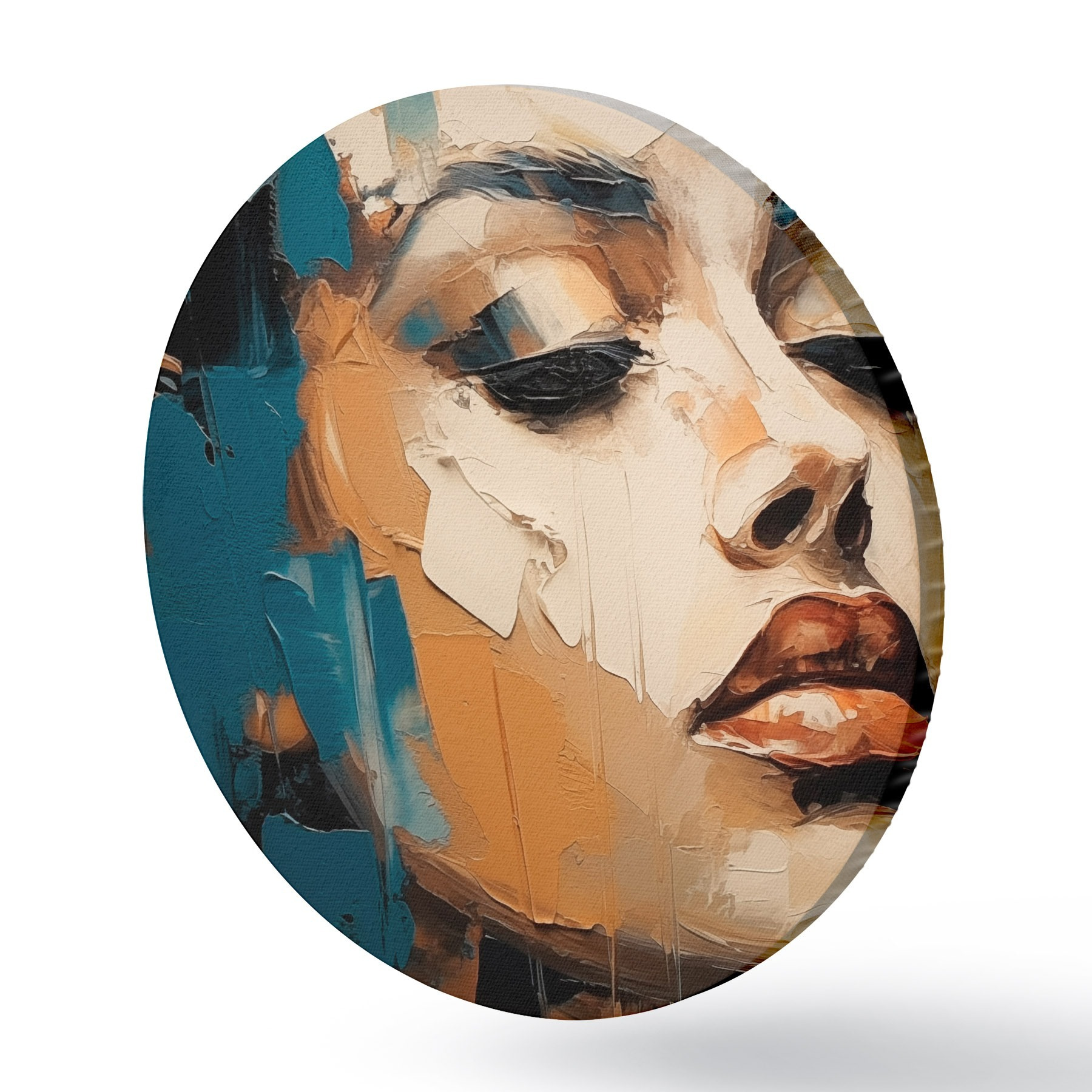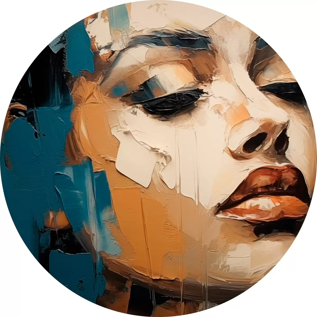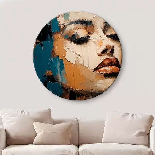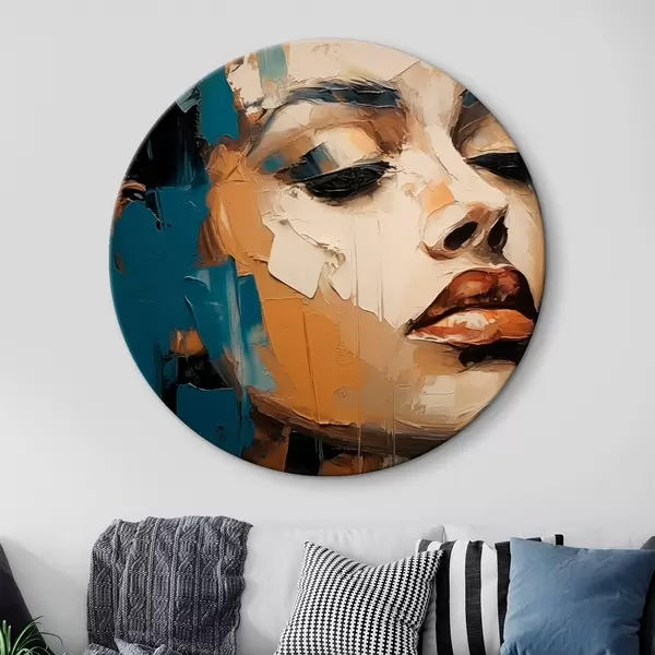 Ronde schilderijen Portret van een vrouw met gesloten ogen r45439