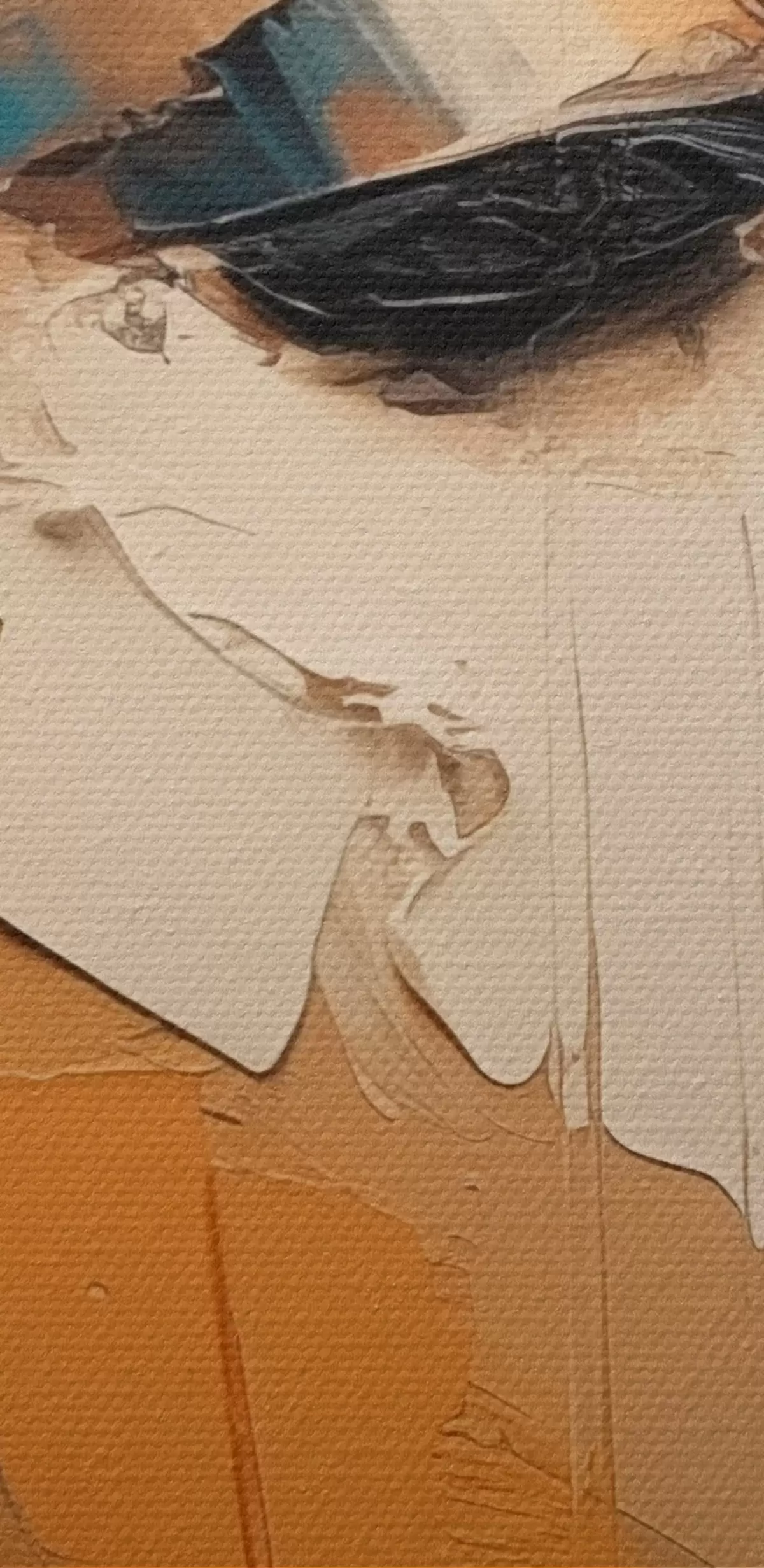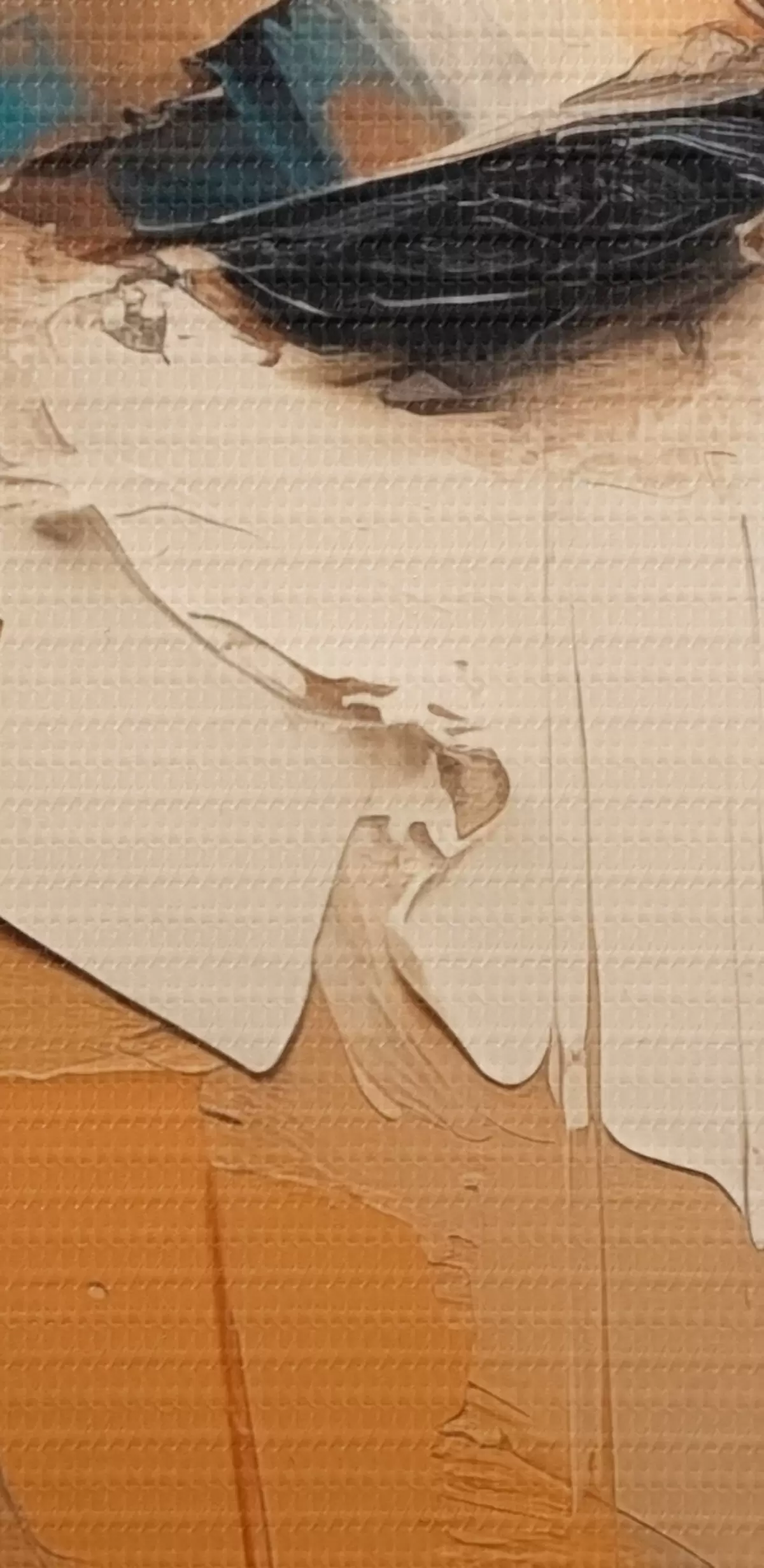 De fijne weving van draden op dit doek lijkt op het oppervlak van professionele schildersdoeken.