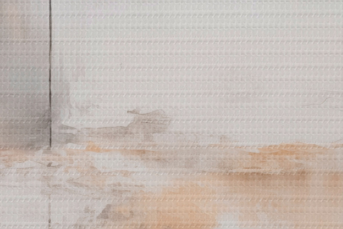 De fijne weving van draden op dit doek lijkt op het oppervlak van professionele schildersdoeken.