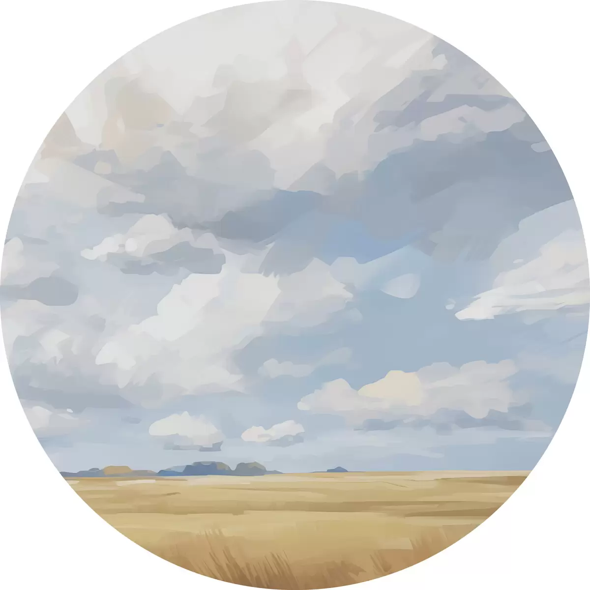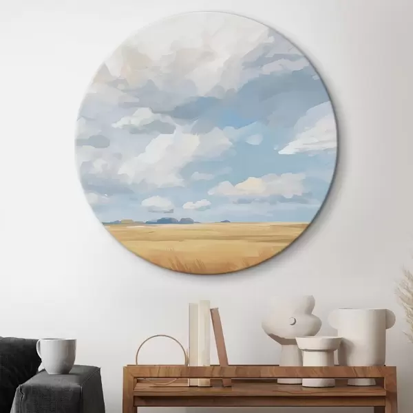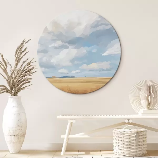 Ronde schilderijen Korenveld tegen de lucht met enorme wolken r45454
