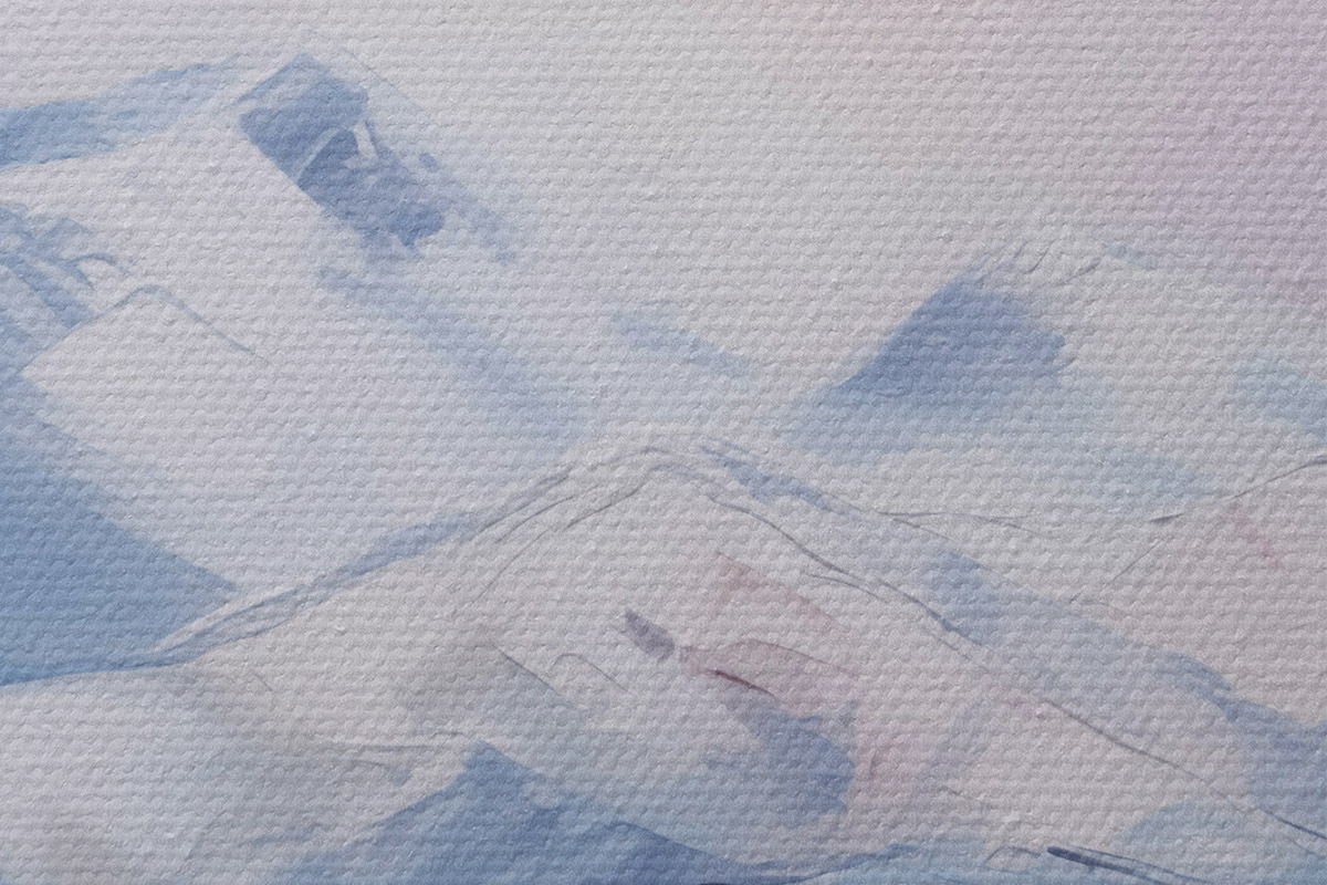 Het schilderij kan voorzichtig worden schoongeveegd met een droge zachte doek of spons; het wordt niet aanbevolen om natte producten te gebruiken. Het gebruik van een vochtige spons is alleen toegestaan als het schilderij gevernist is.