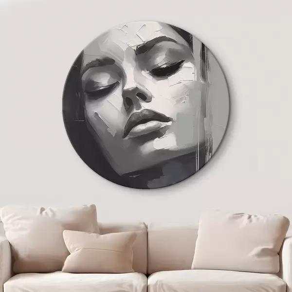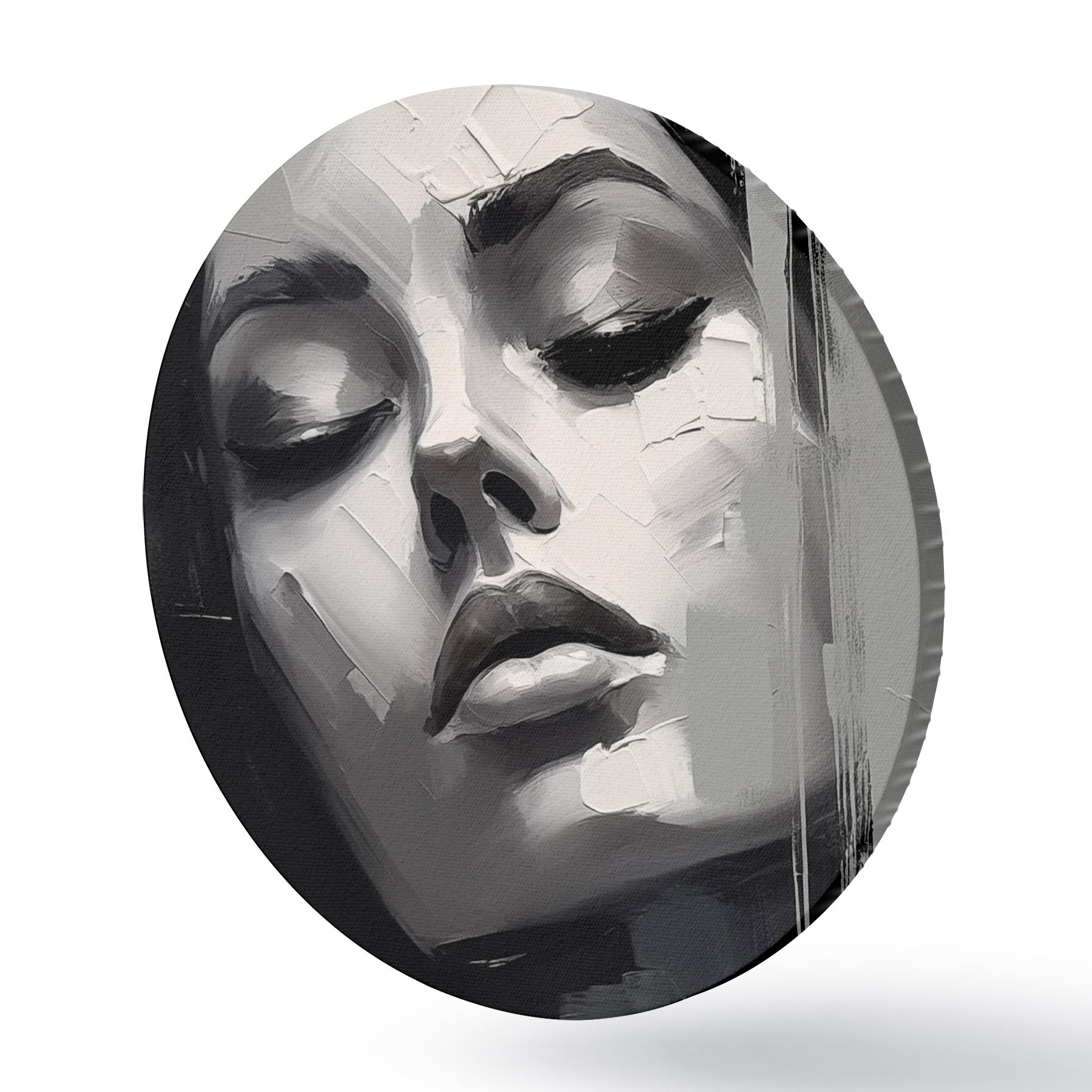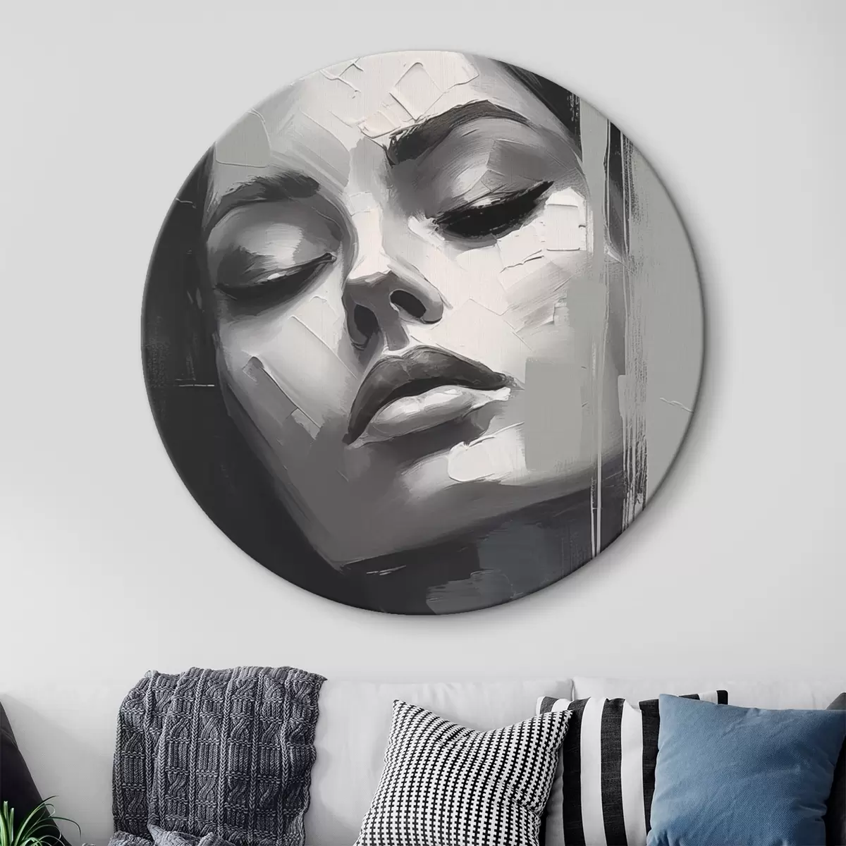 Ronde schilderijen Zwart-wit portret van een vrouw met gesloten ogen r45479