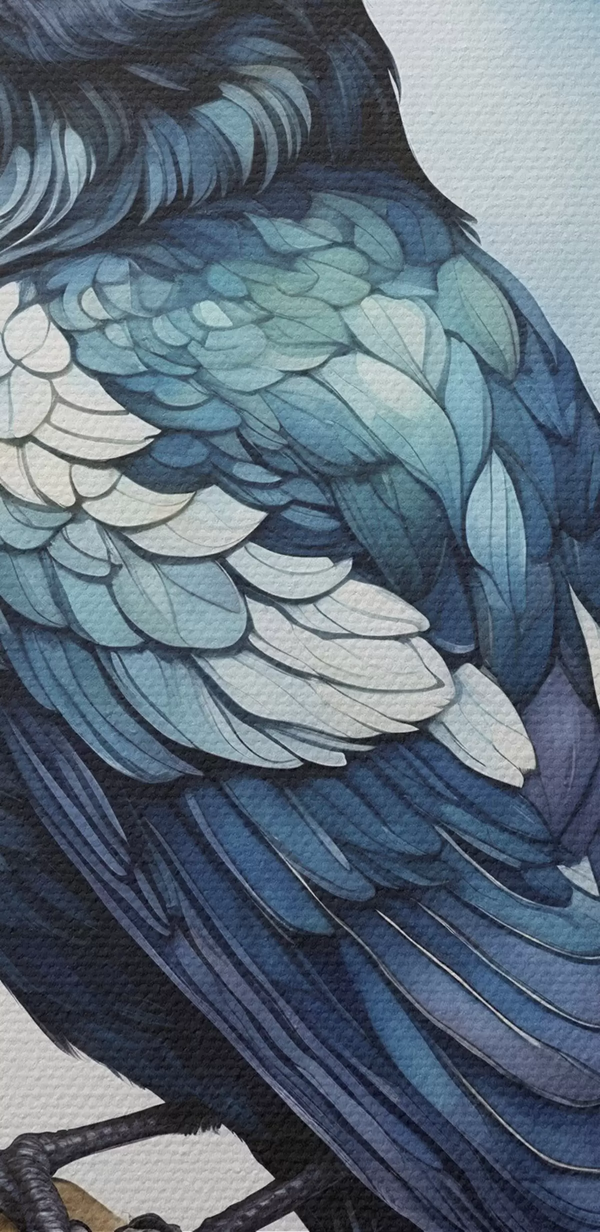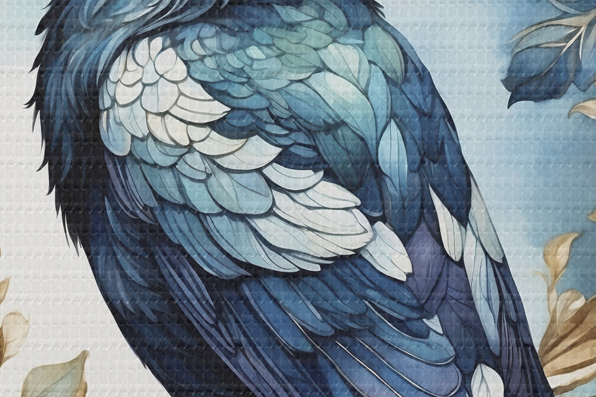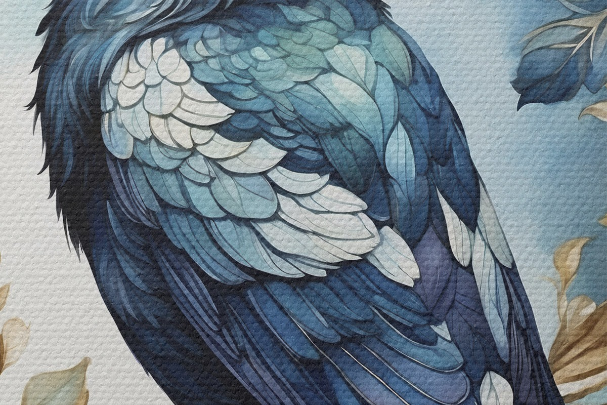 Afbeelding Blauwe vogel op een tak met bladeren in aquarelstijl Nr r45483