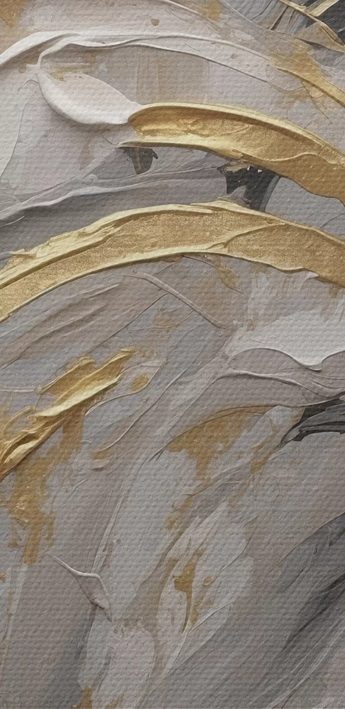 Het schilderij kan direct na ontvangst worden opgehangen. Het schilderij wordt opgespannen op een 2 cm breed houten spieraam.