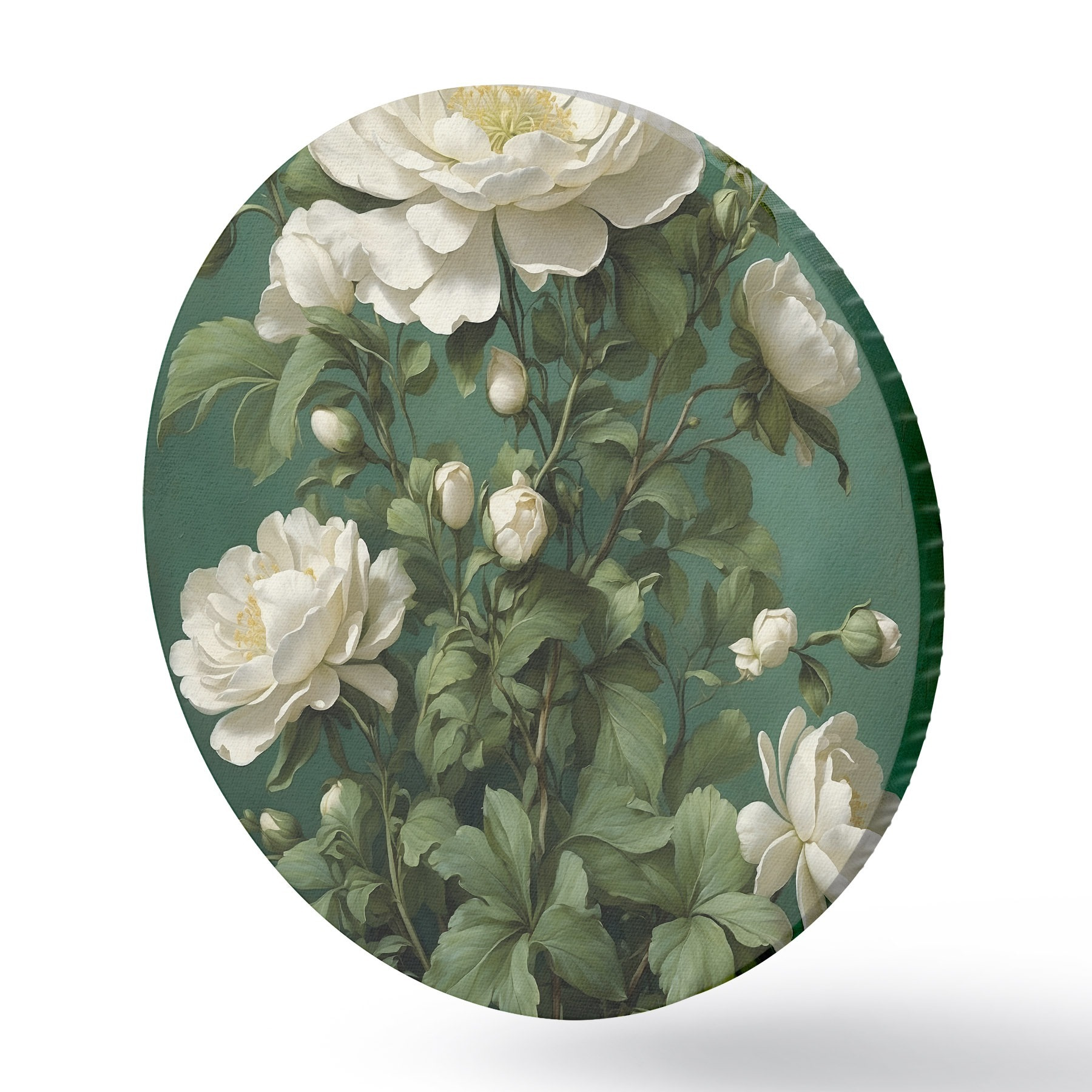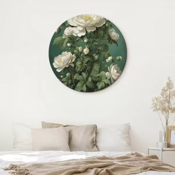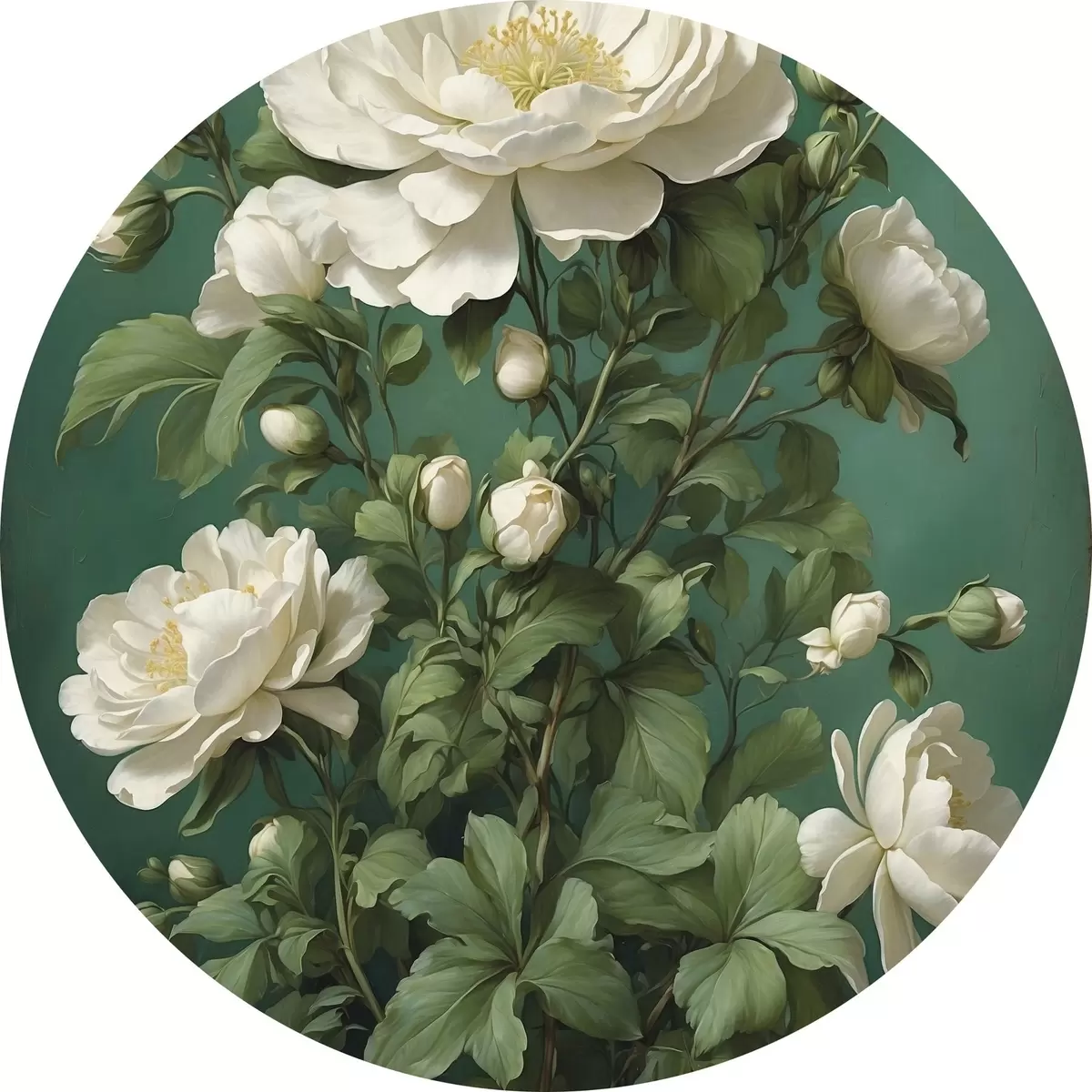 Ronde schilderijen Grote blauwe klaprozen met knoppen op een lichte achtergrond r45491