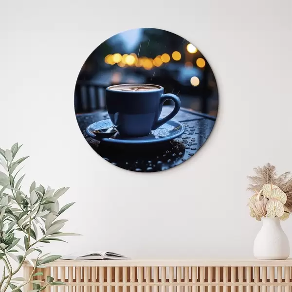 Ronde schilderijen Abstract schilderij in beige en zwarte tinten r45497