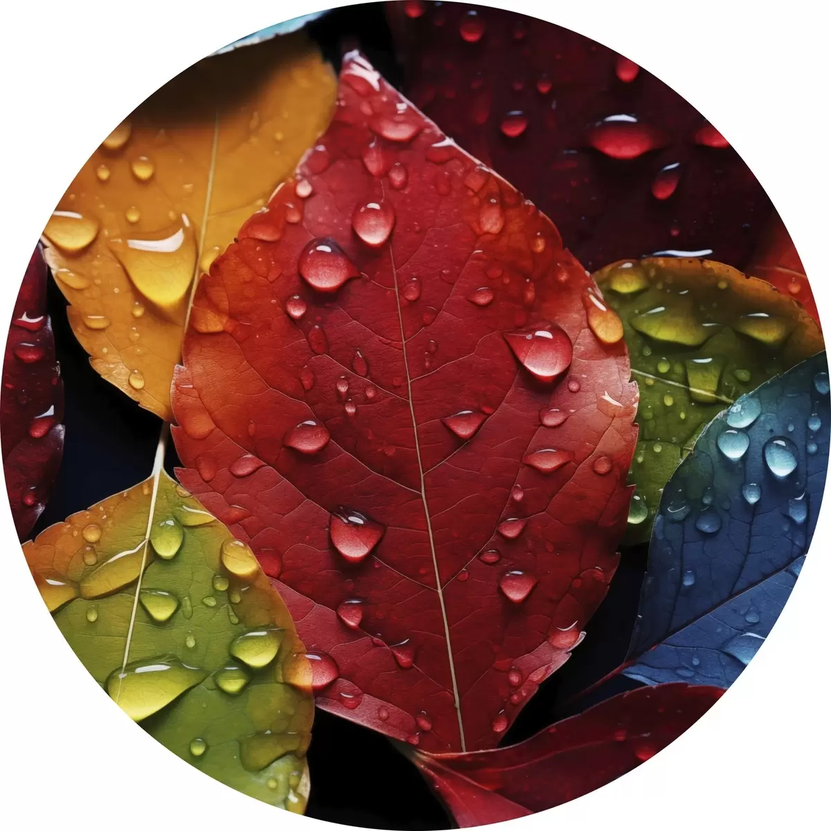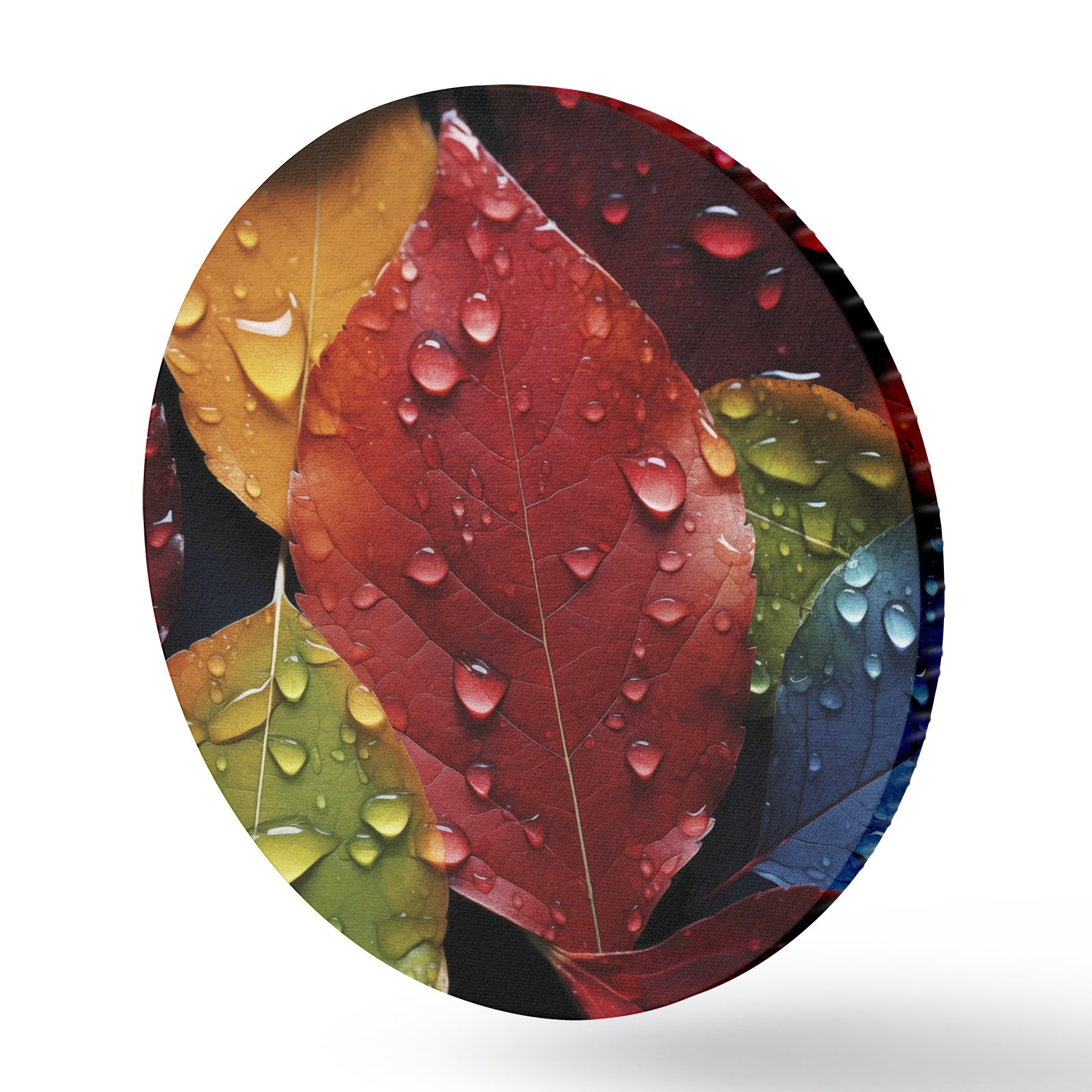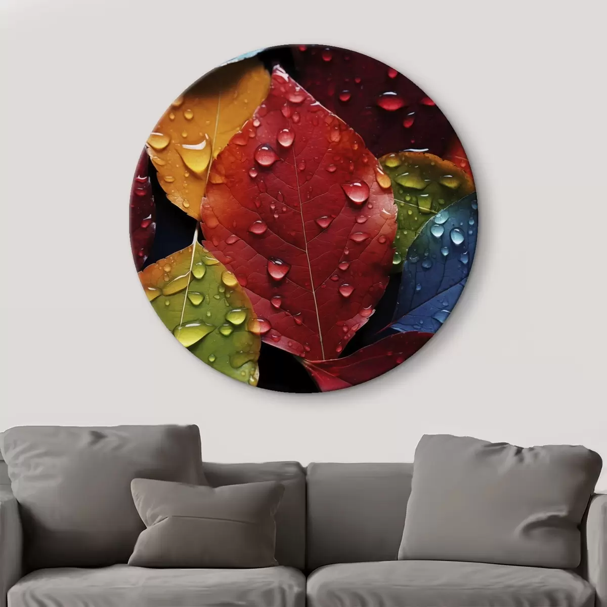 Ronde schilderijen Kleurrijke bladeren met waterdruppels r45516