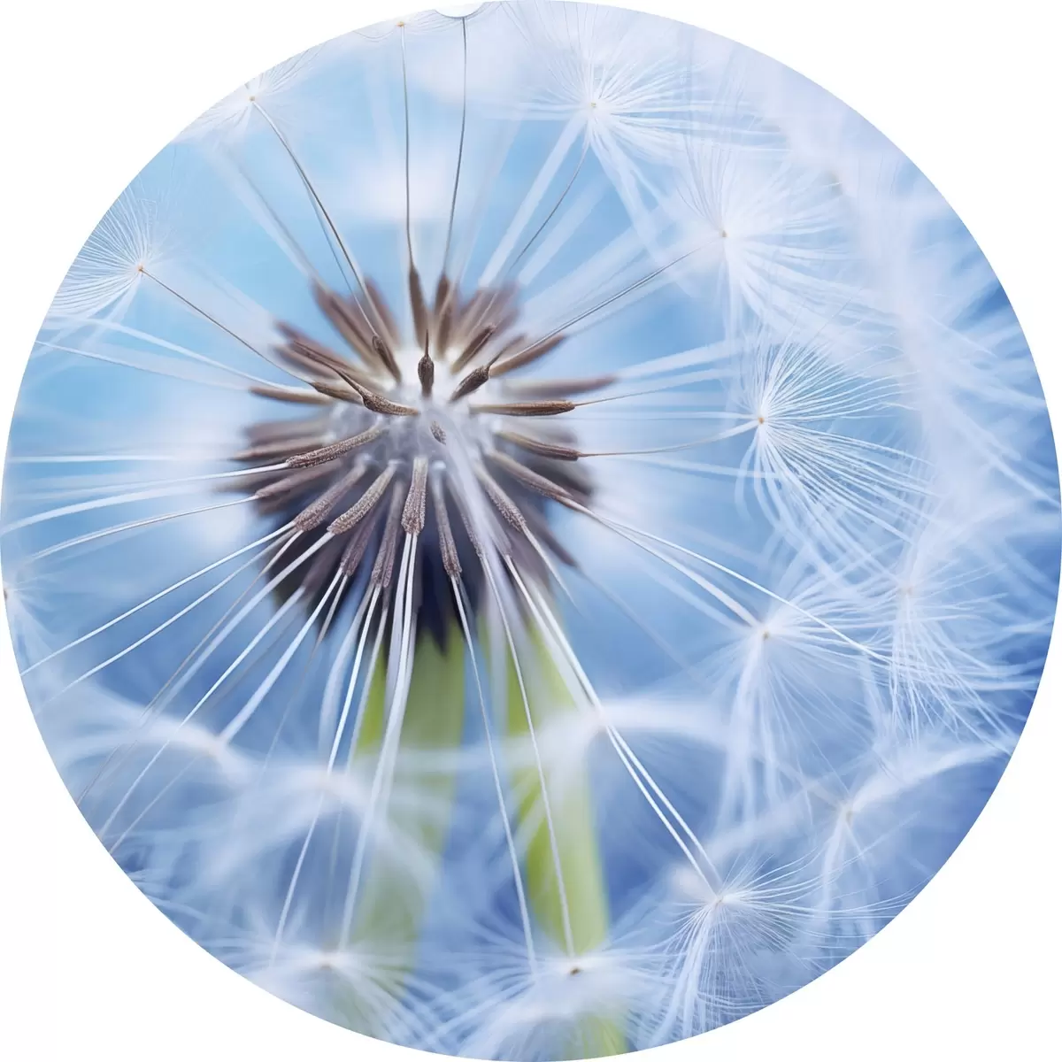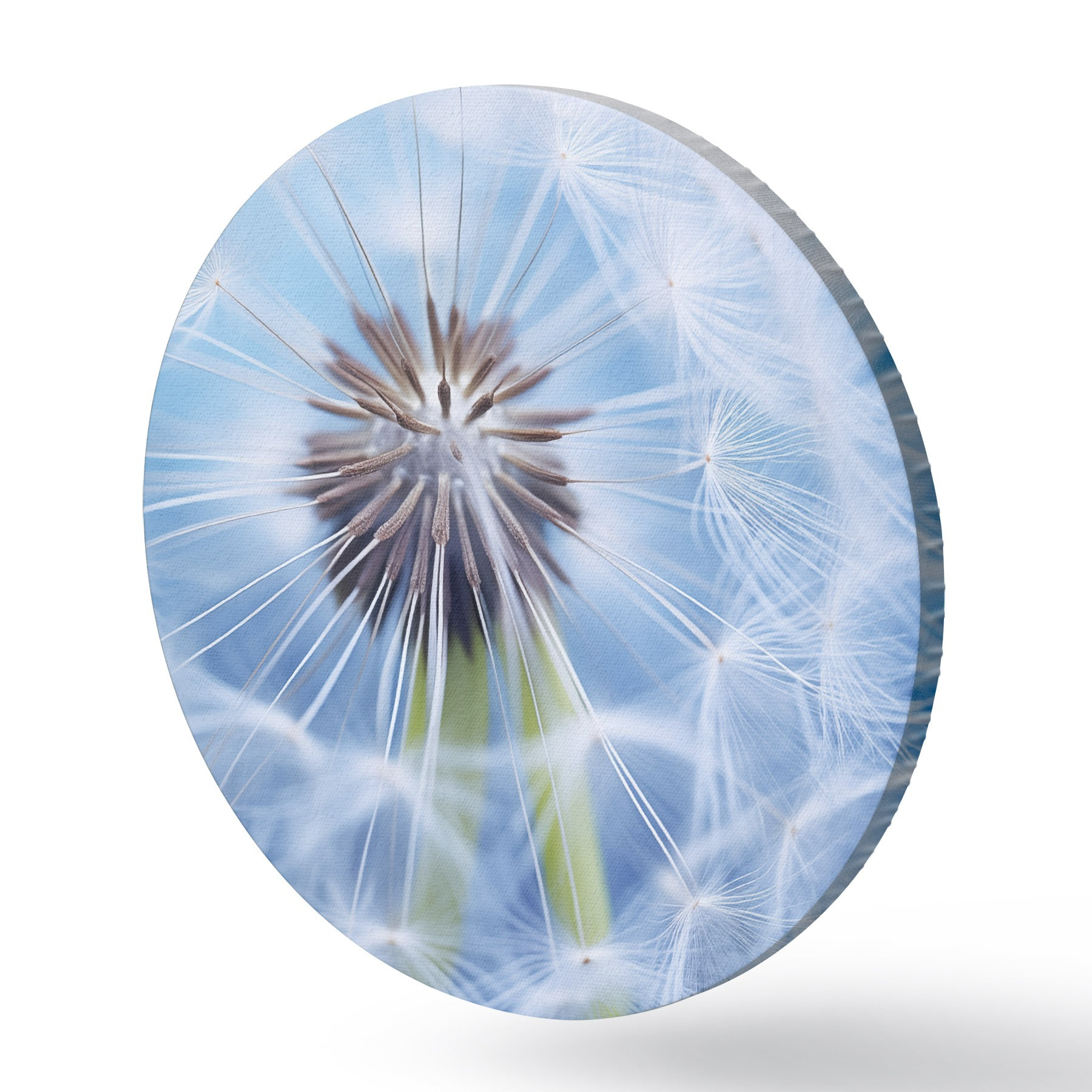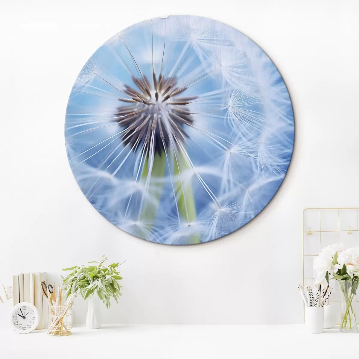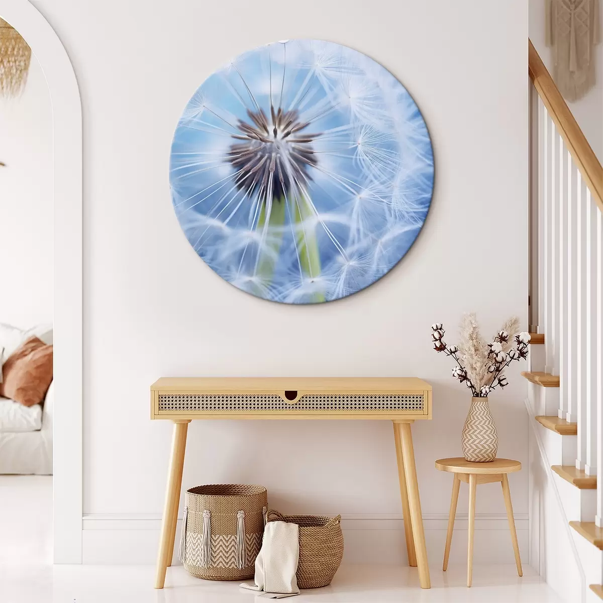 Ronde schilderijen Macro-opname van een paardenbloem op een blauwe achtergrond r45517