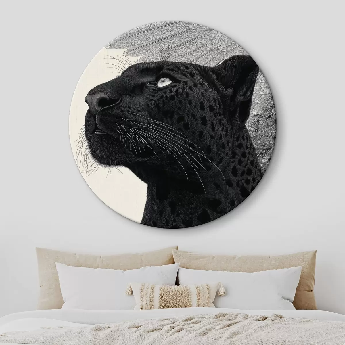 Ronde schilderijen Grafische compositie: panter met vleugels r45548