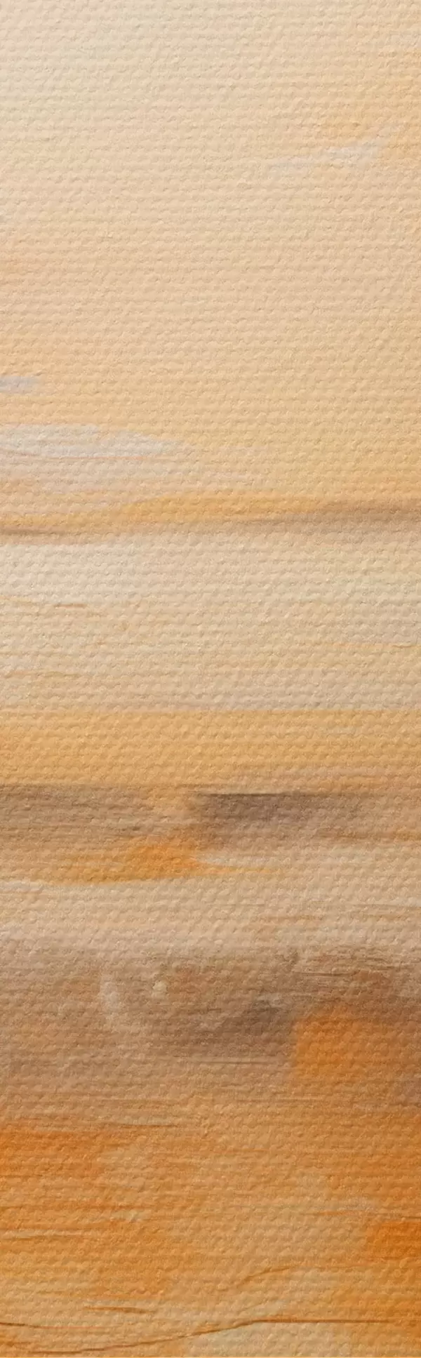 Afbeelding Een abstract schilderij van een strandlandschap met een kalme oceaan, oranje zand en een bewolkte lucht met zon Nr r45567