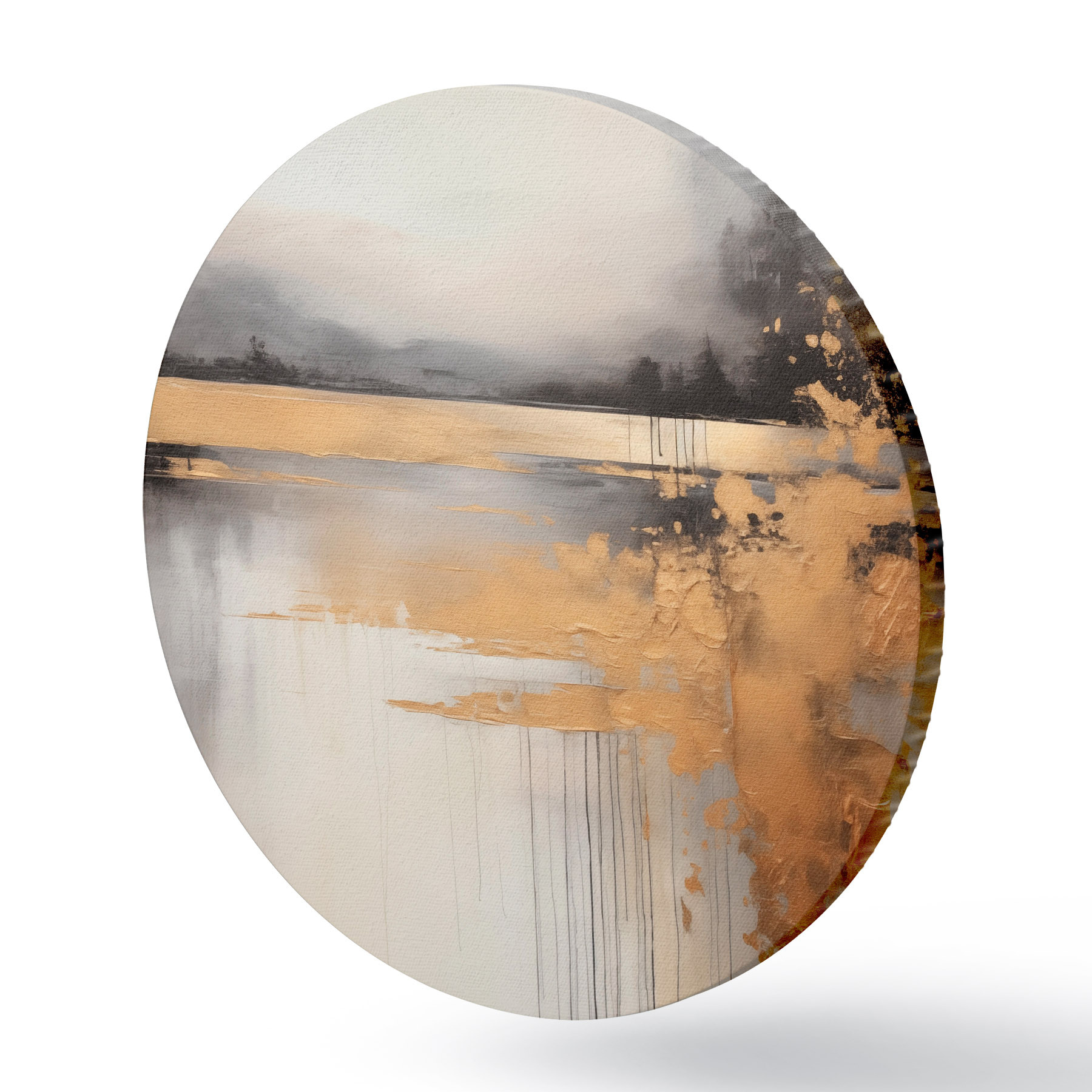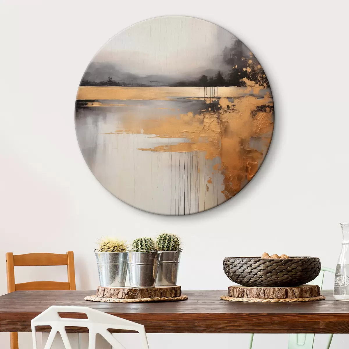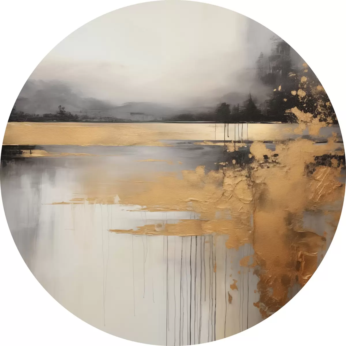 Ronde schilderijen Abstract textuurlandschap met een rivier en donkere bomen op de achtergrond, de lucht is bewolkt r45576