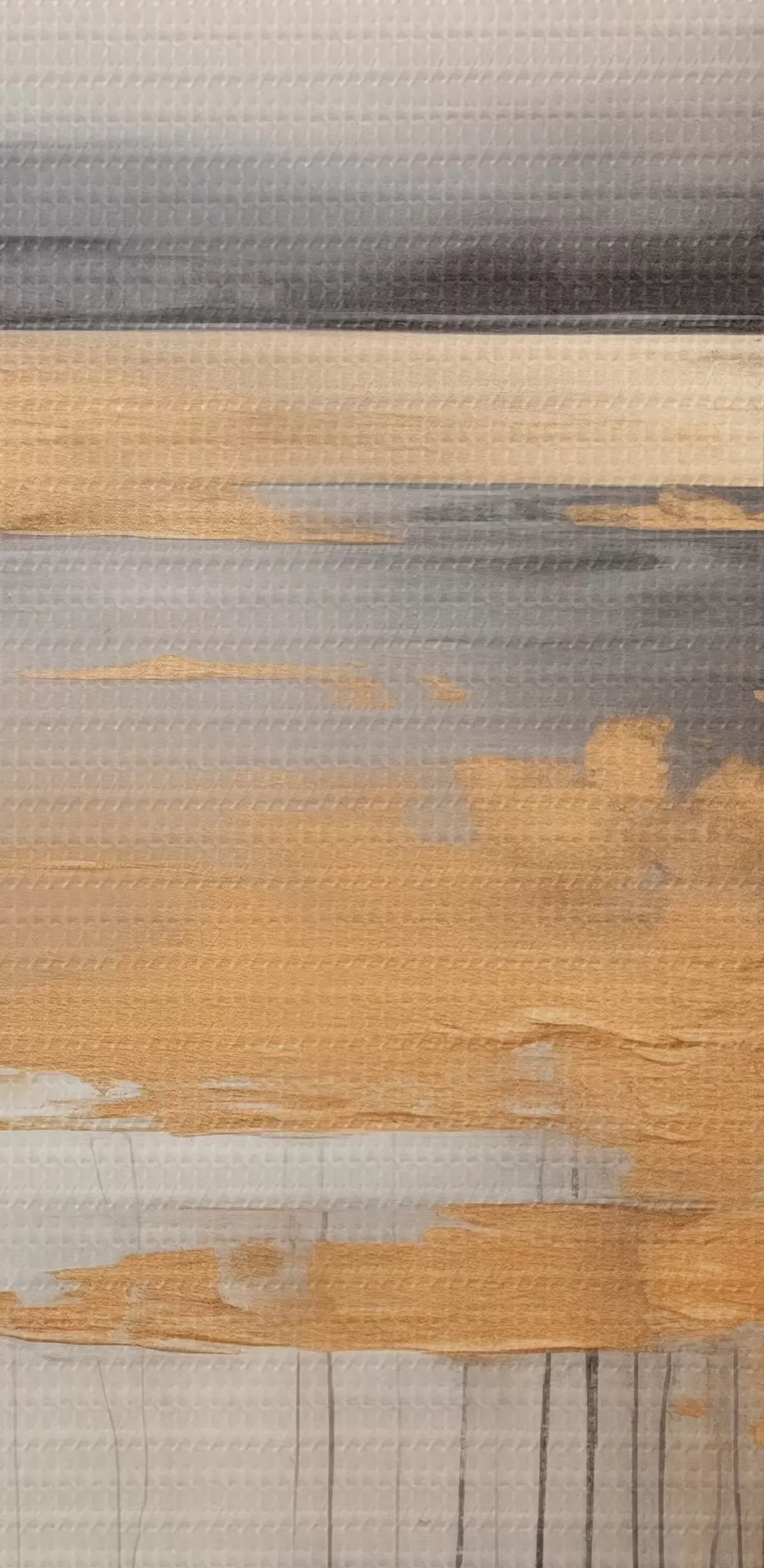 Het schilderij kan direct na ontvangst worden opgehangen. Het schilderij wordt opgespannen op een 2 cm breed houten spieraam.
