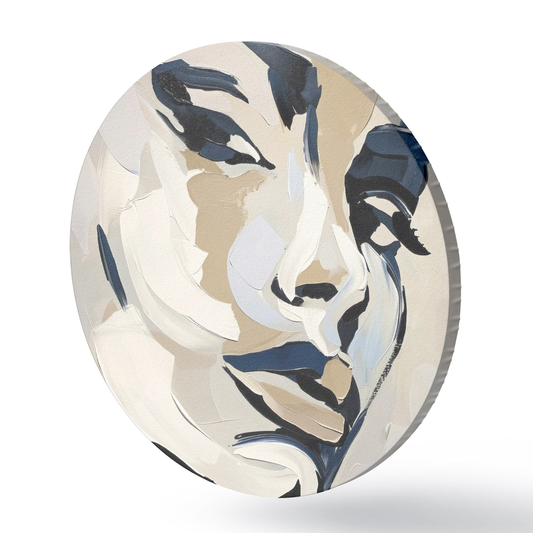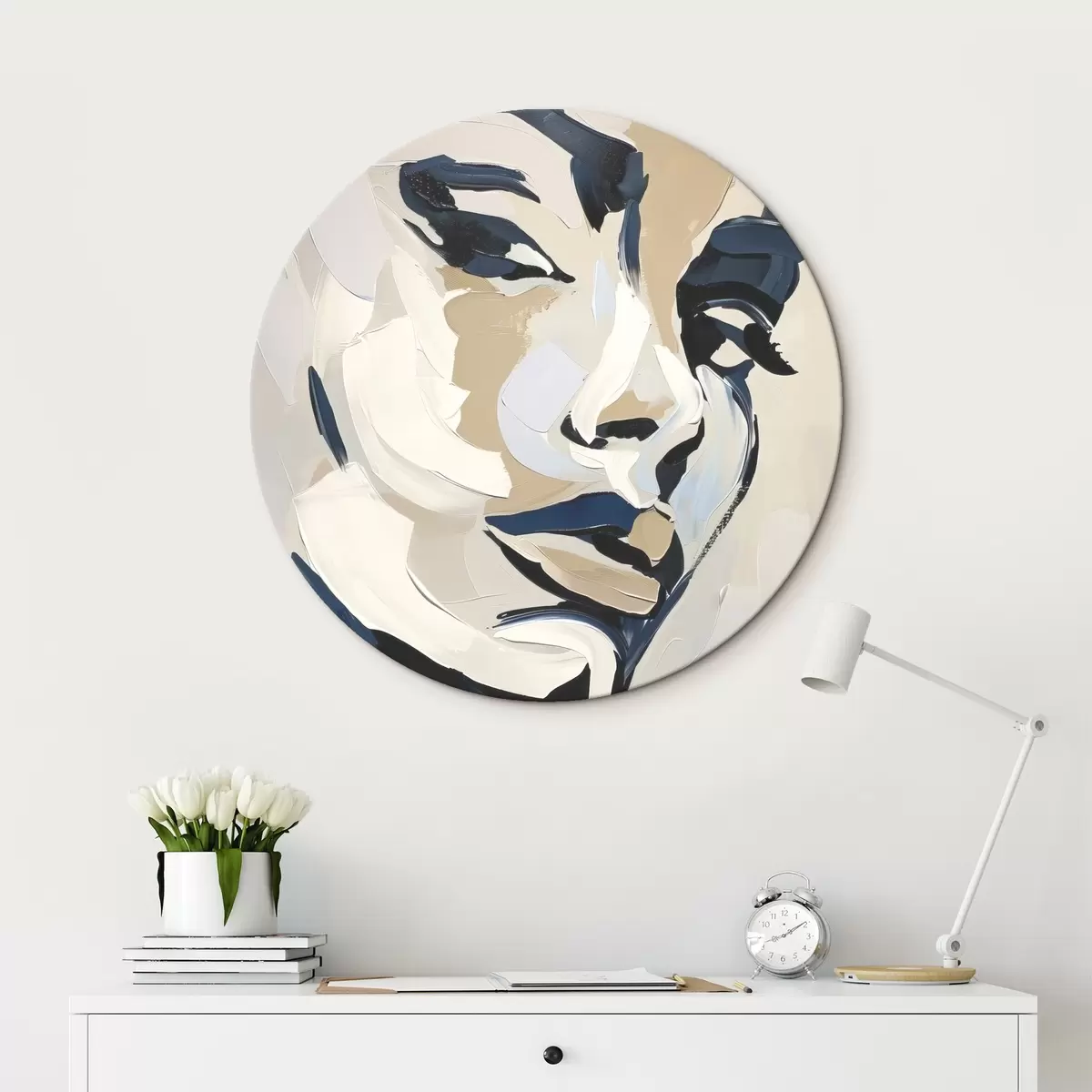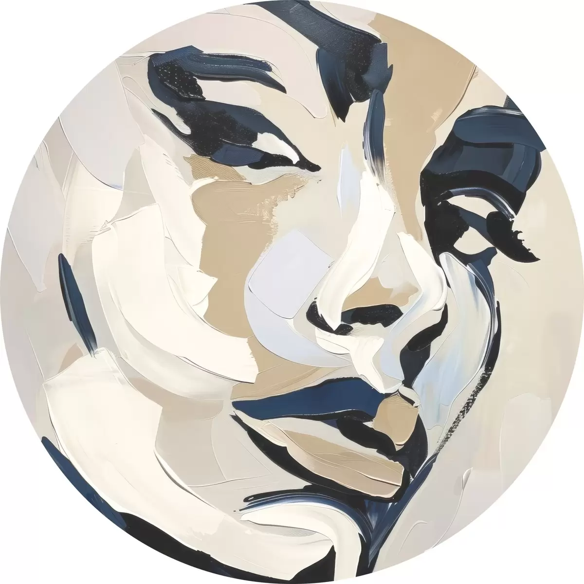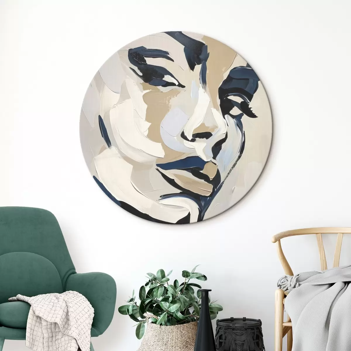 Ronde schilderijen Abstract portret van een vrouw met imitatie penseelstreken r45593