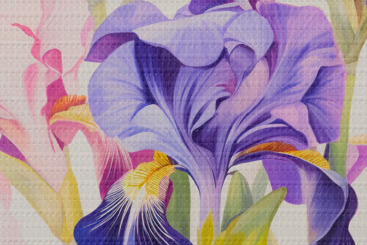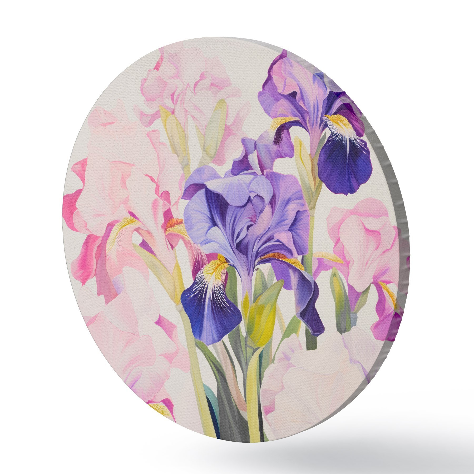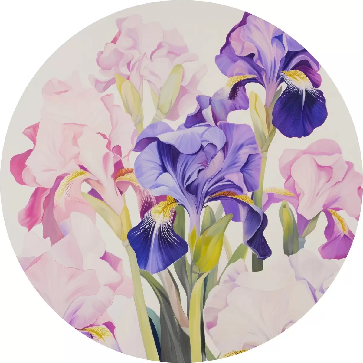Ronde schilderijen Boeket irissen in lila tinten r45597