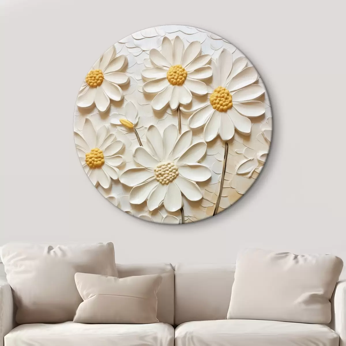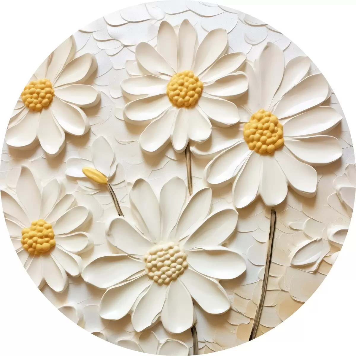 Ronde schilderijen Madeliefjes in impasto stijl: witte bloemblaadjes r45647
