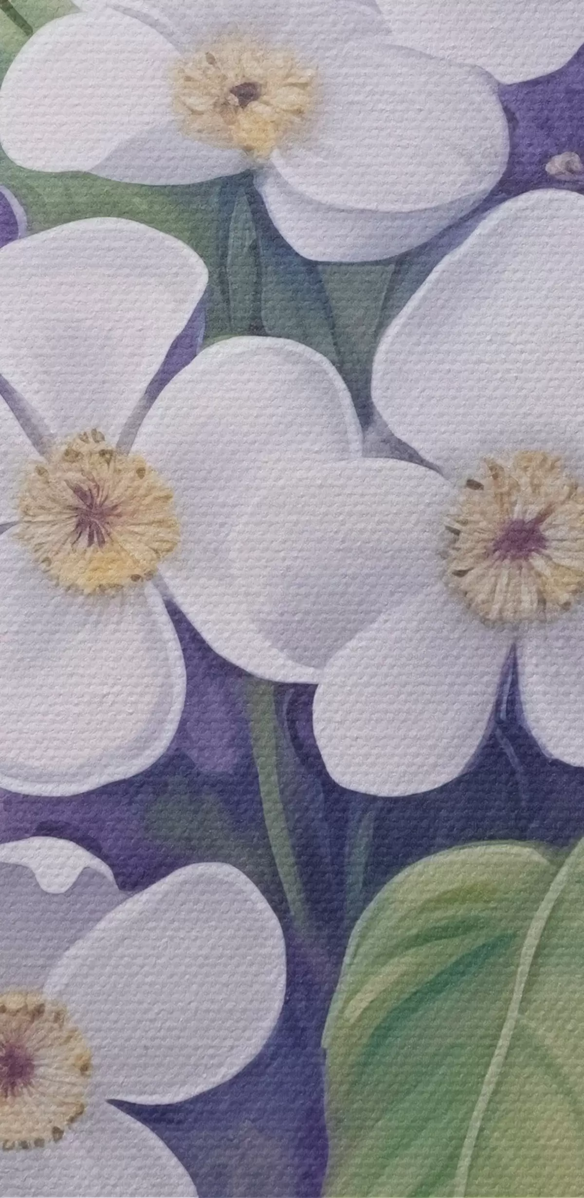 Het schilderij kan direct na ontvangst worden opgehangen. Het schilderij wordt opgespannen op een 2 cm breed houten spieraam.