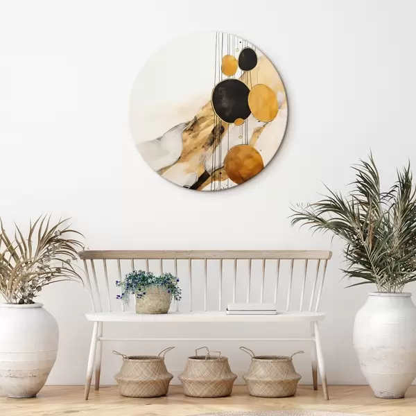 Ronde schilderijen Abstracte oranje en zwarte cirkels op een lichte achtergrond r45693
