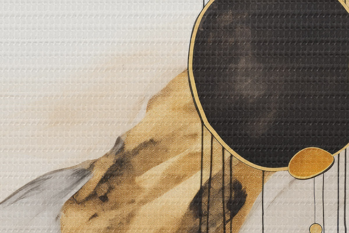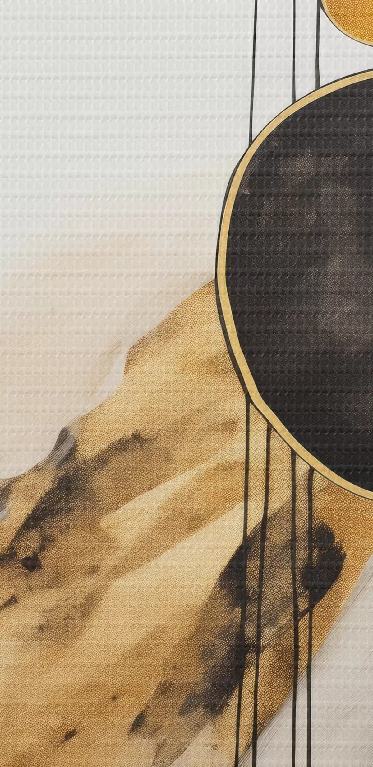 Afbeelding Abstracte oranje en zwarte cirkels op een lichte achtergrond Nr r45693