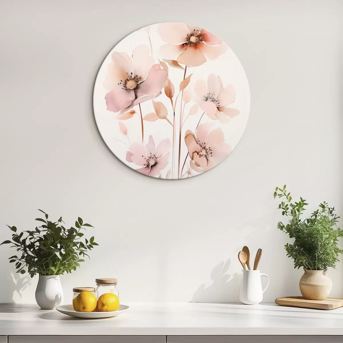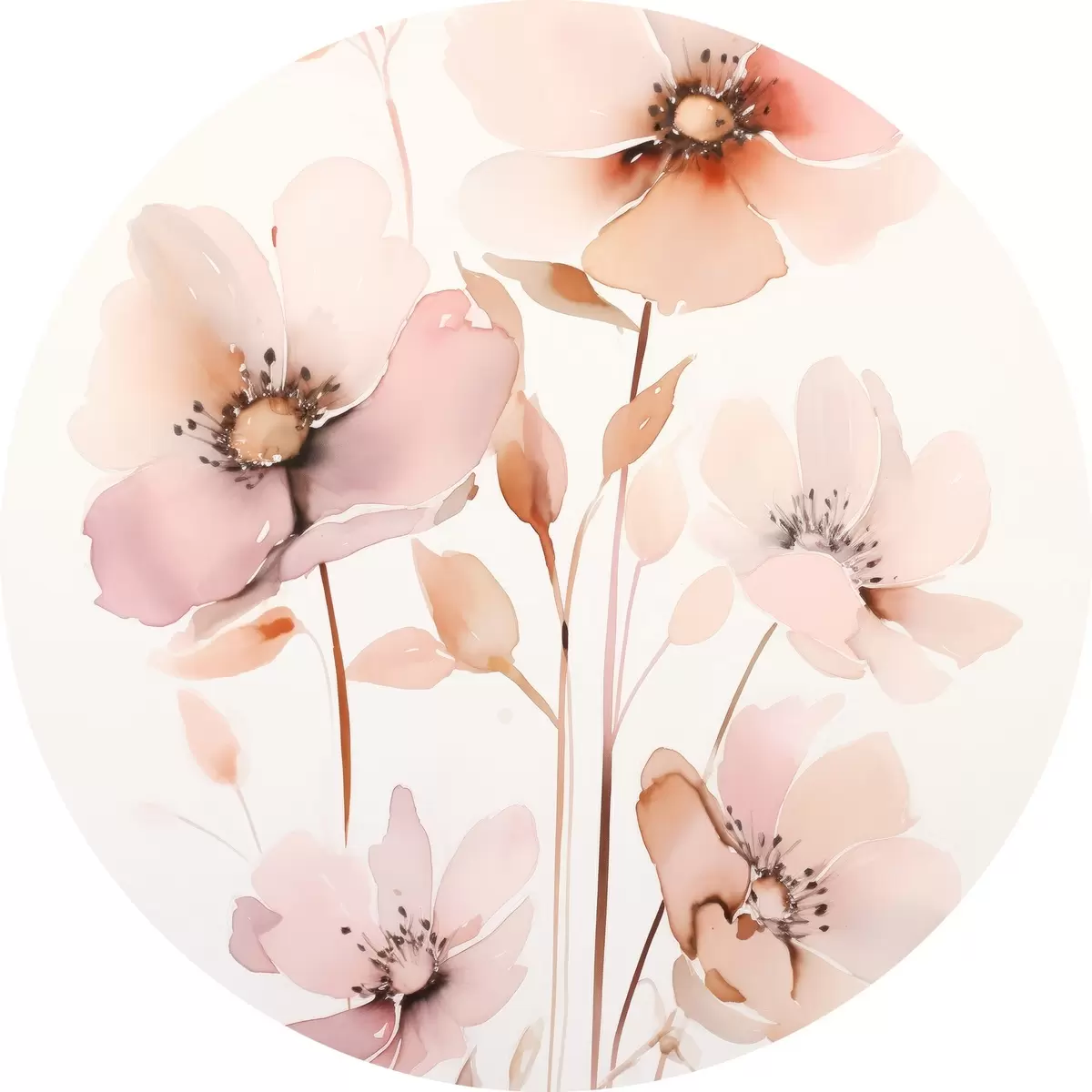 Ronde schilderijen Aquarelroze bloemen op dunne stelen r45701