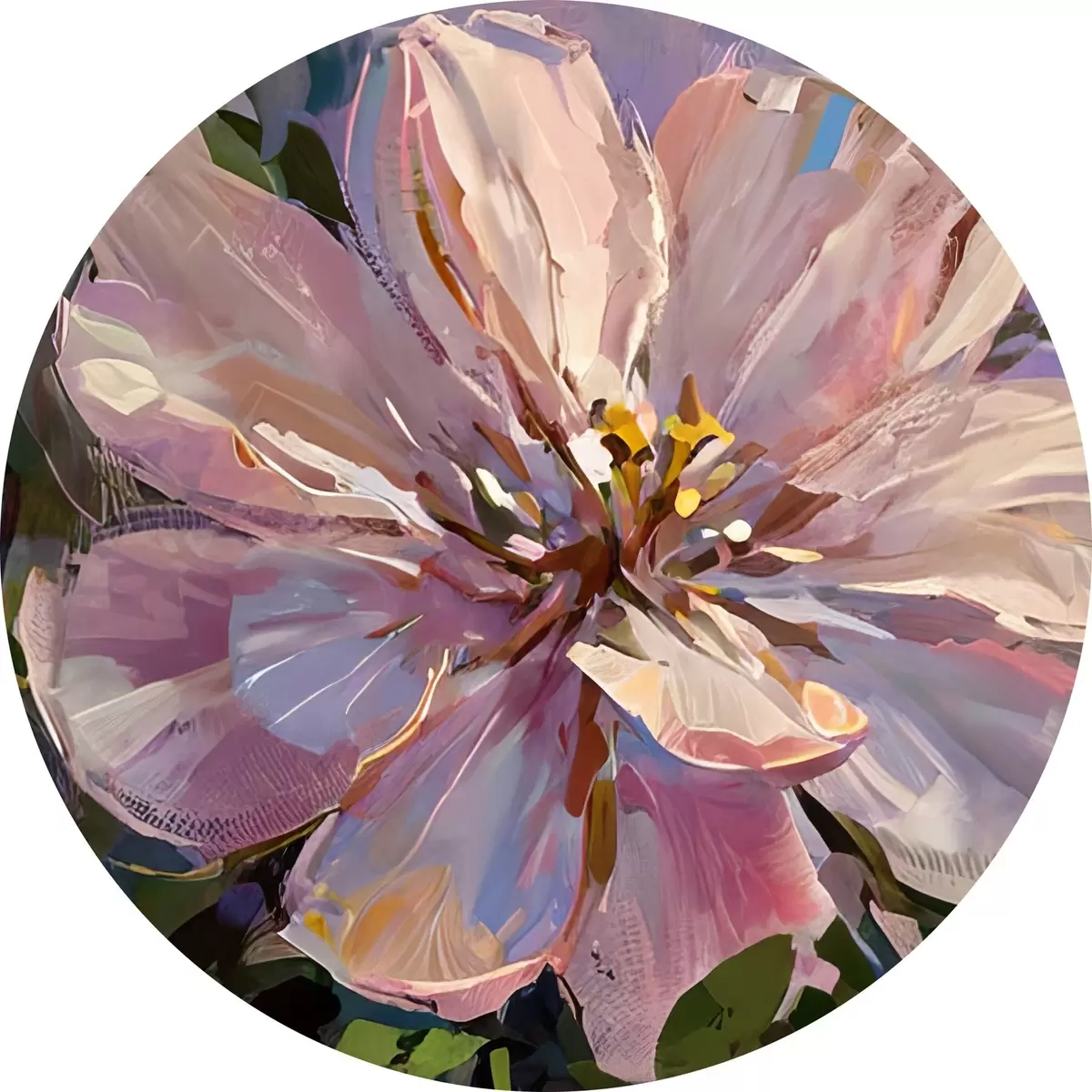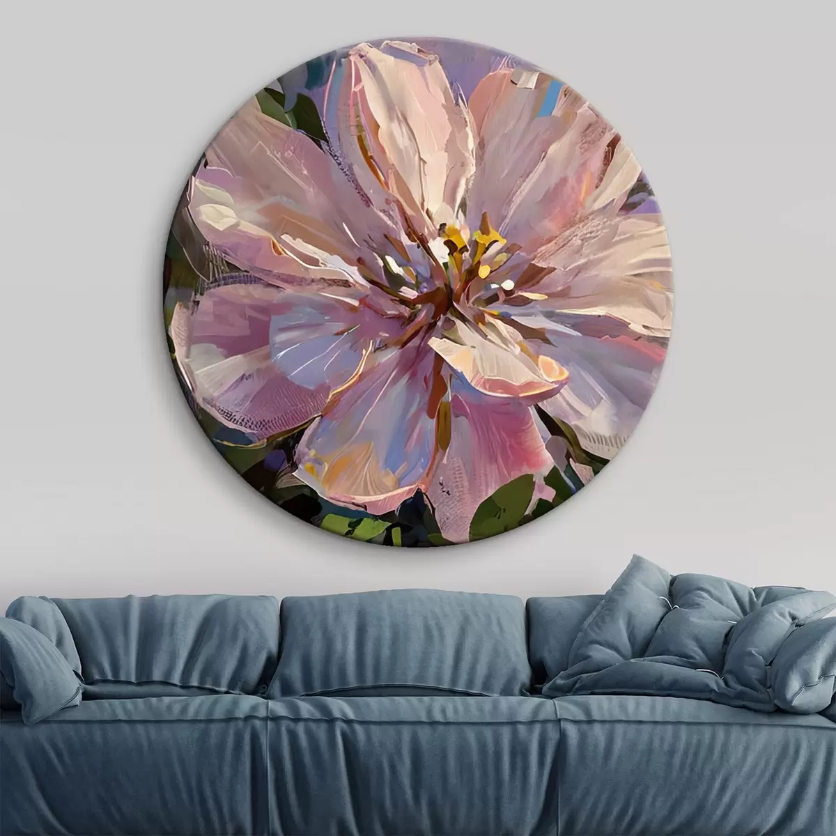 Ronde schilderijen roze bloemen in de stijl van een olieverfschilderij r45723