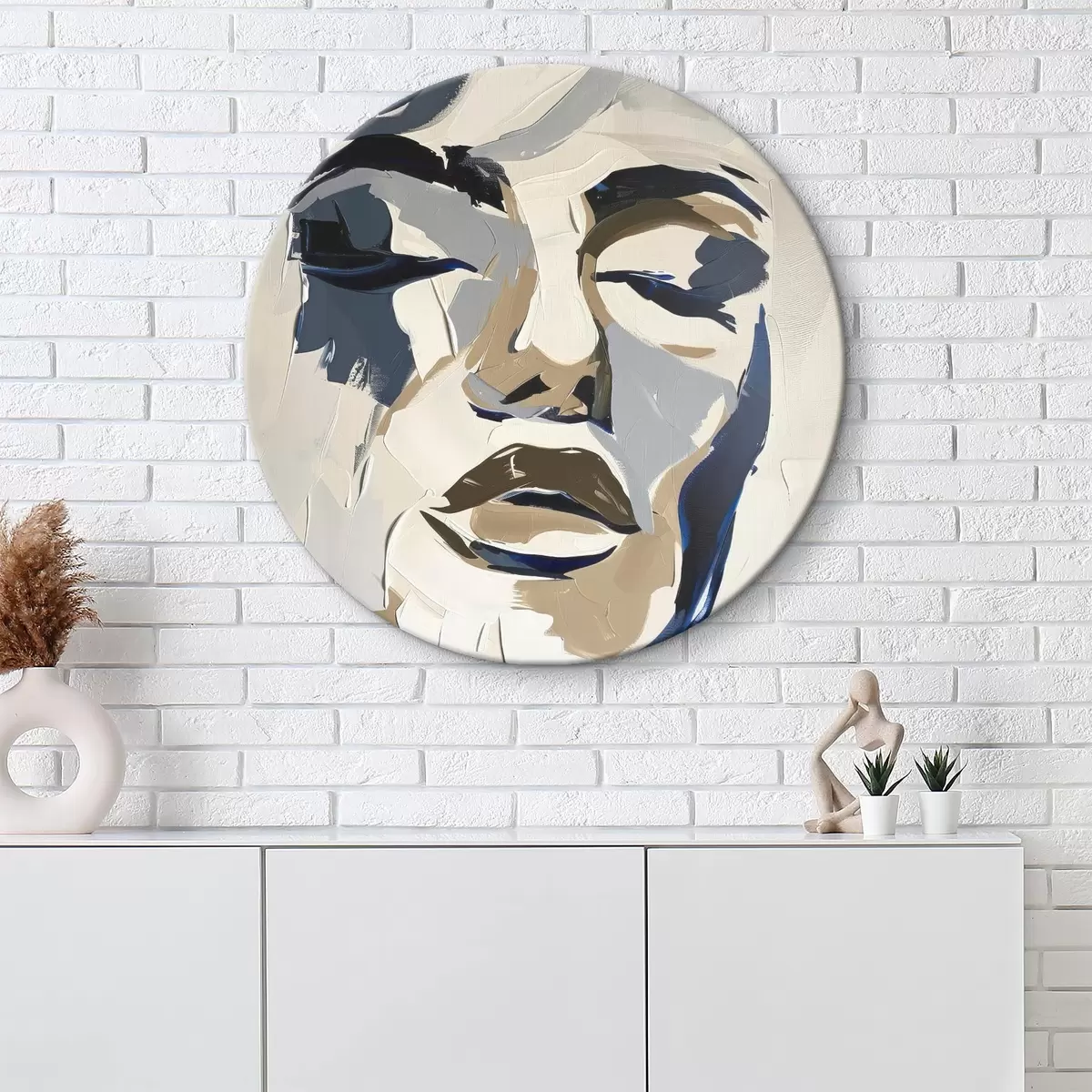 Ronde schilderijen Abstract portret van een vrouw met imitatie penseelstreken r45743