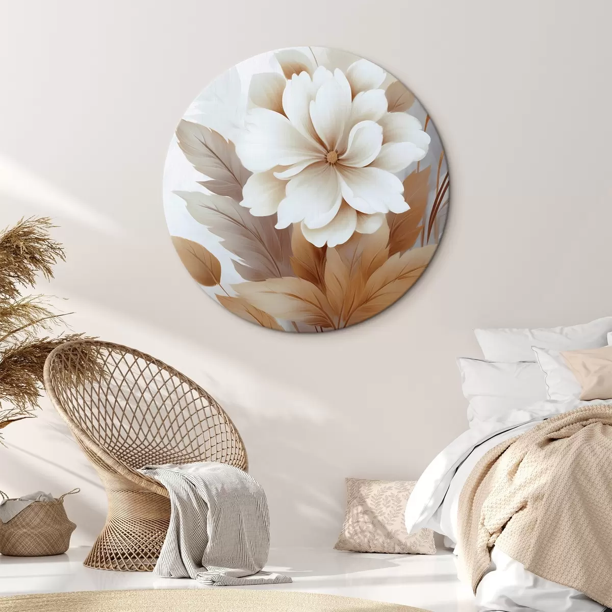 Ronde schilderijen Een bloem met bladeren r45744