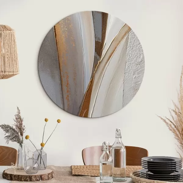 Ronde schilderijen Getextureerde abstracte lijnen met gele en oranje glitters r45810