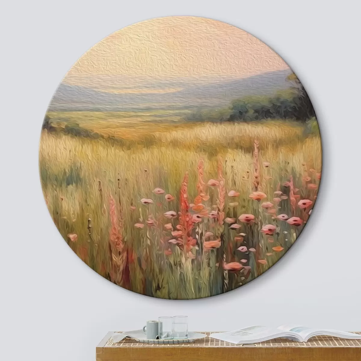 Ronde schilderijen Landschap met bloemen bij zonsondergang r45818