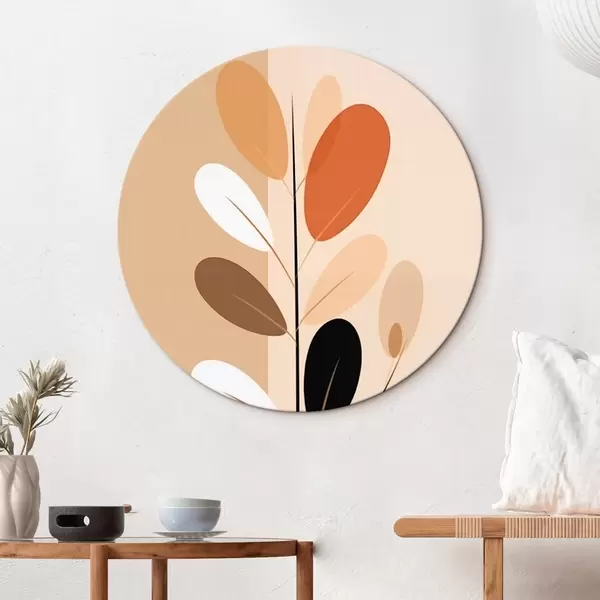 Ronde schilderijen Minimalistische tak met bladeren r45834