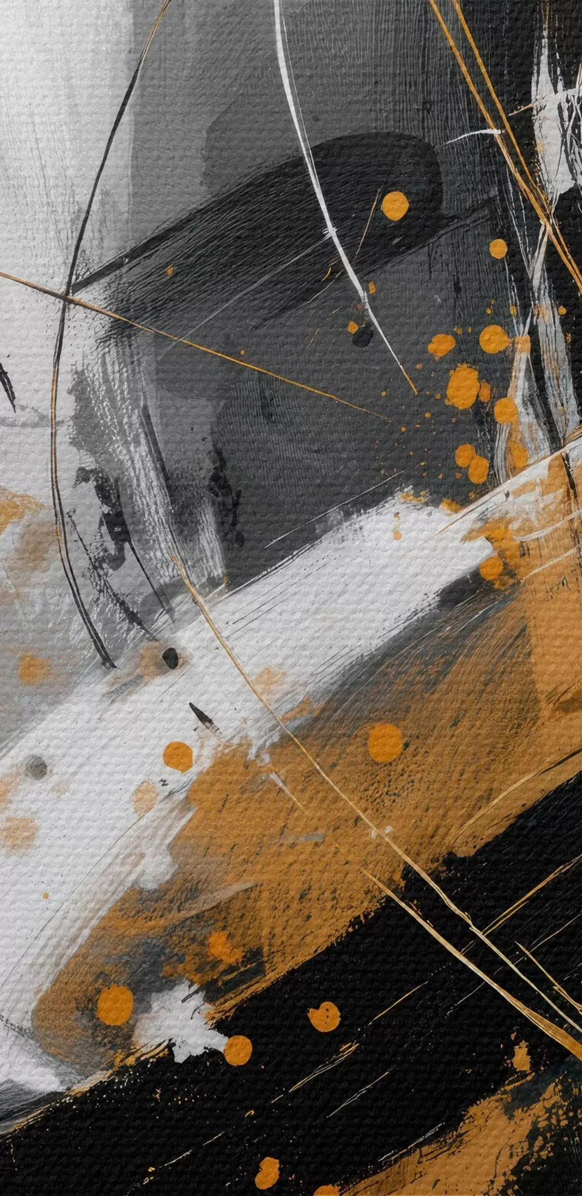 Het schilderij kan direct na ontvangst worden opgehangen. Het schilderij wordt opgespannen op een 2 cm breed houten spieraam.