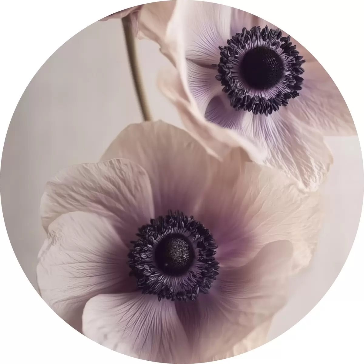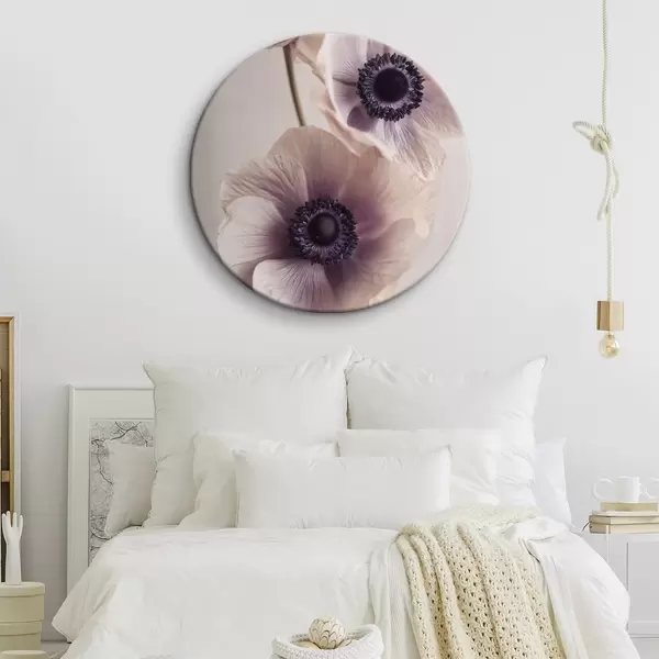 Ronde schilderijen Delicate anemonen met donkere hartjes, pastelkleurig r45875