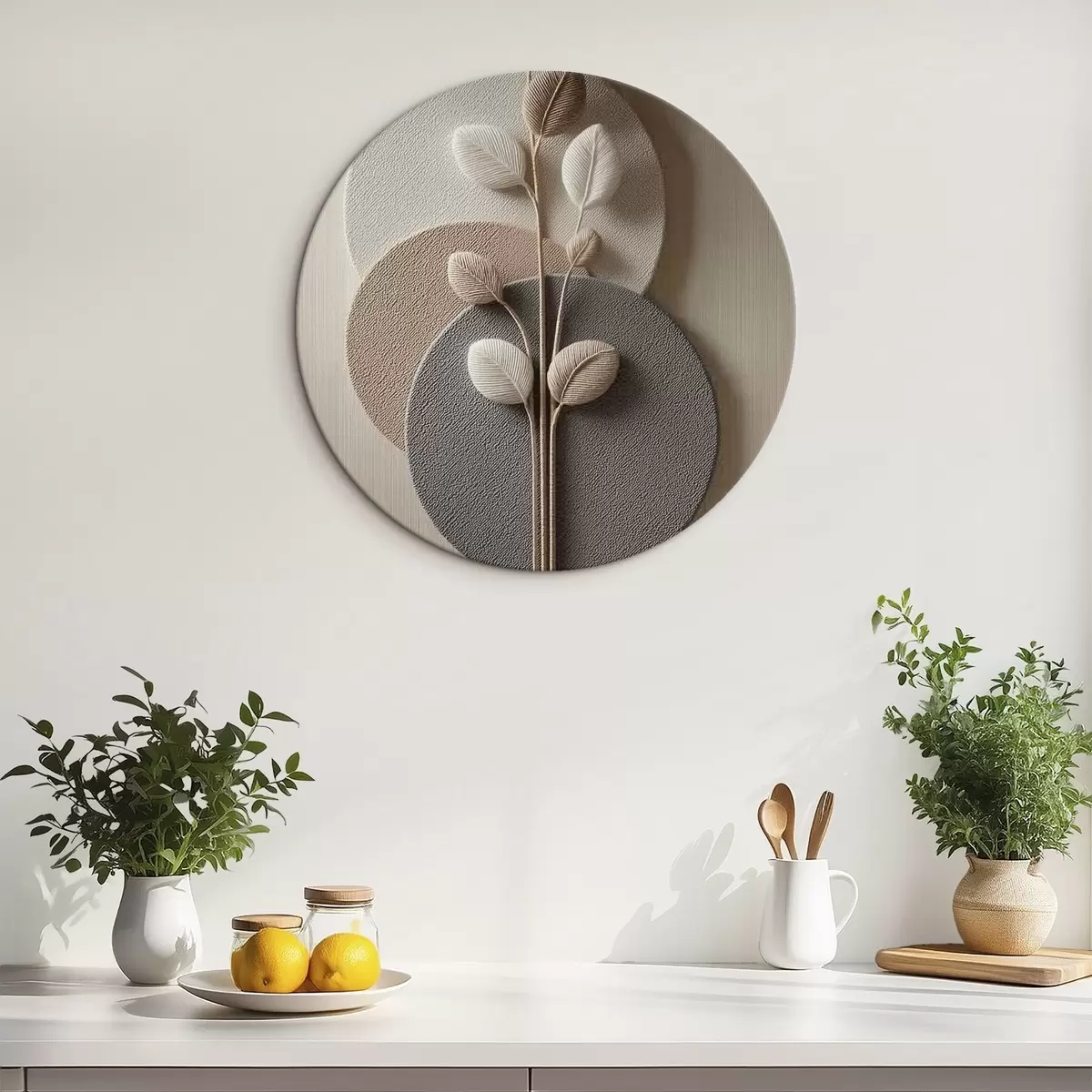 Afbeelding Reliefcirkels en een tak in warme neutrale tinten Nr r45883